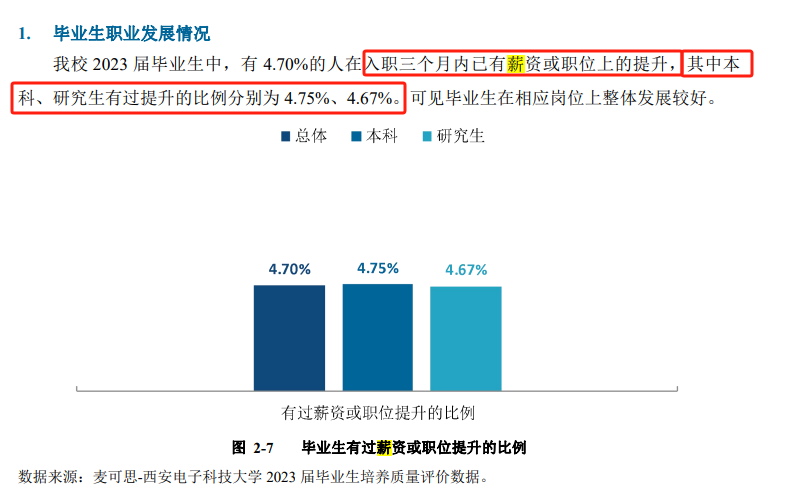 ⑤西安电子科技大学:虽未公布具体的薪资水平,但有4.67%的研究生在入职三个月内有薪资或者职位上的提升。