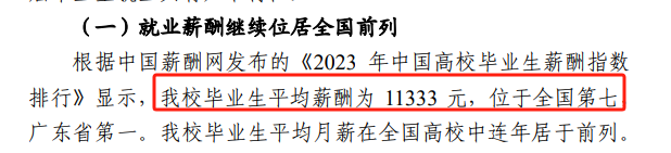 ①广东外语外贸大学:我校毕业生平均薪酬为 11333 元,位于全国第七,广东省第一。我校毕业生平均月薪在全国高校中连年居于前列。