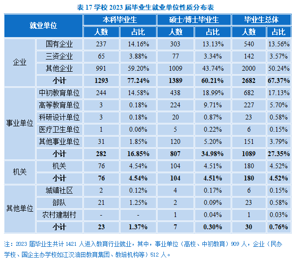 ⑥湖北大学:相较于本科生,该校研究生进入各行业的人数都比本科生人数多。
