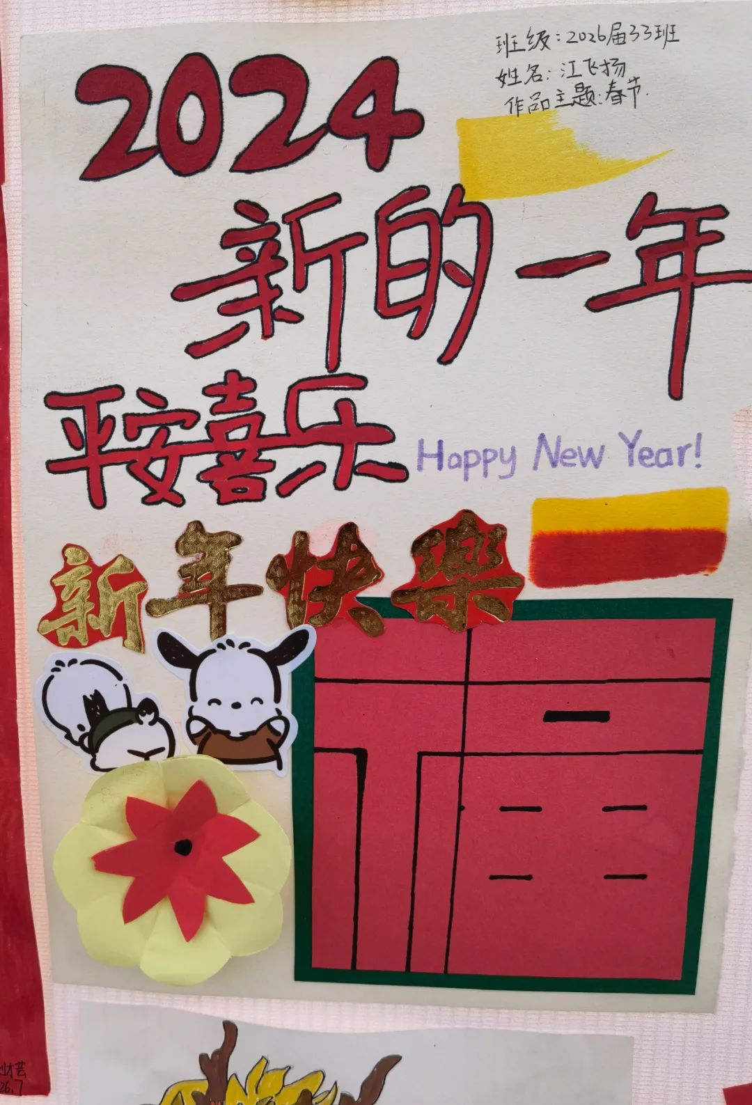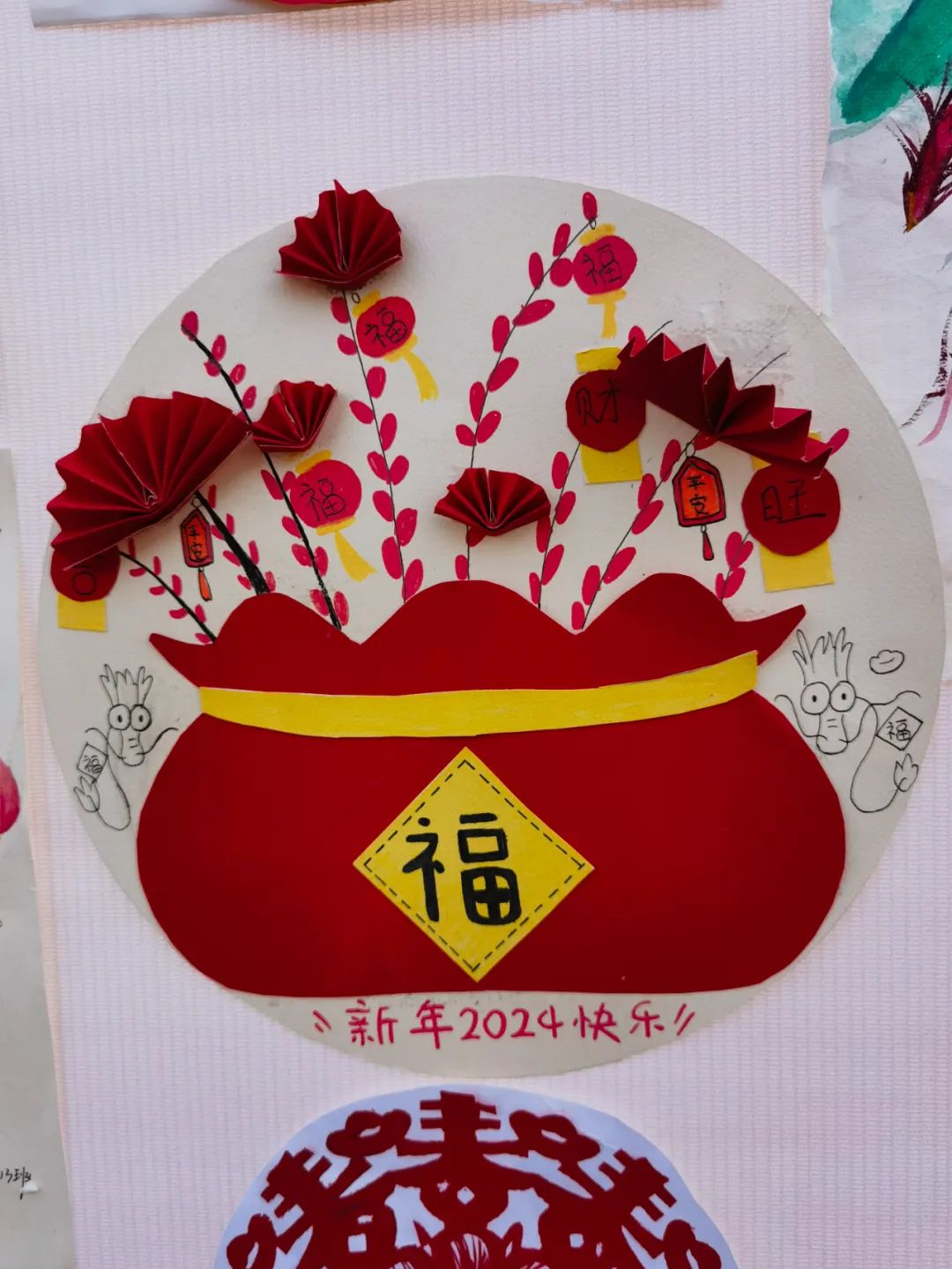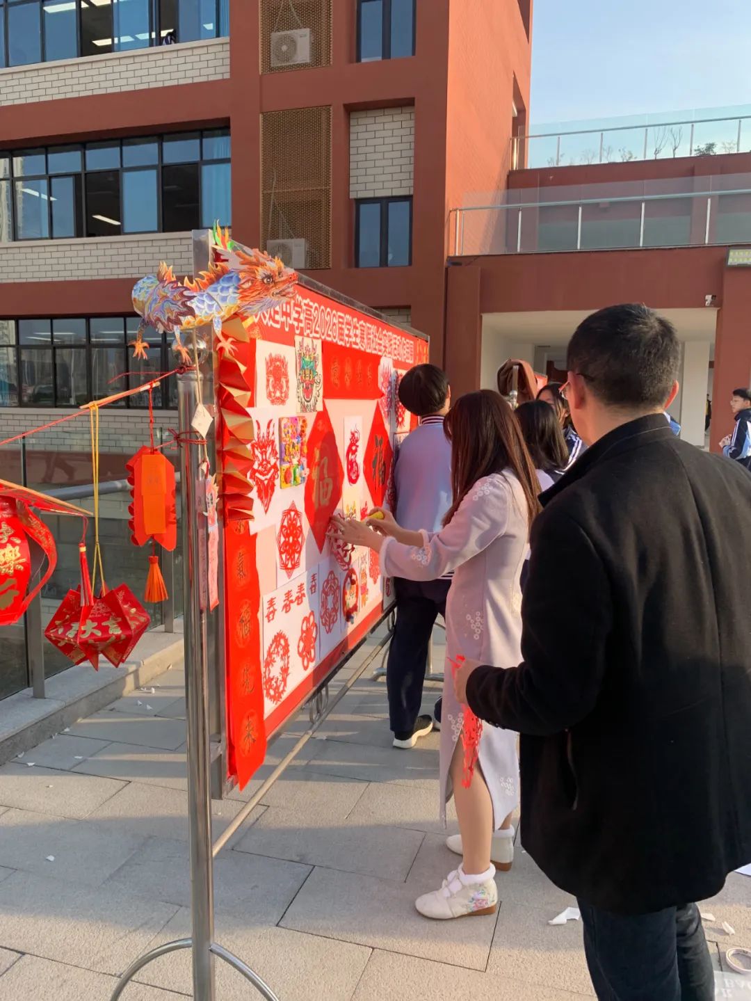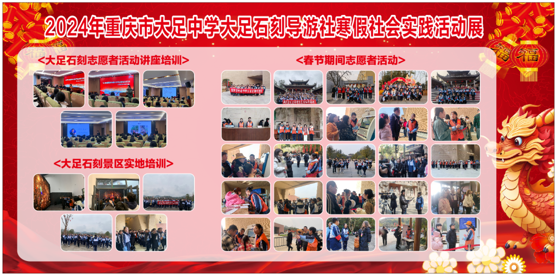 为了践行“五美”教育理念,丰富学生假期生活,传扬中国传统文化,我校高2026届组织学生于寒假期间进行了春节手工作品的制作以及大足石刻志愿服务的社会实践活动,并于开学第一天进行了汇报展出。
