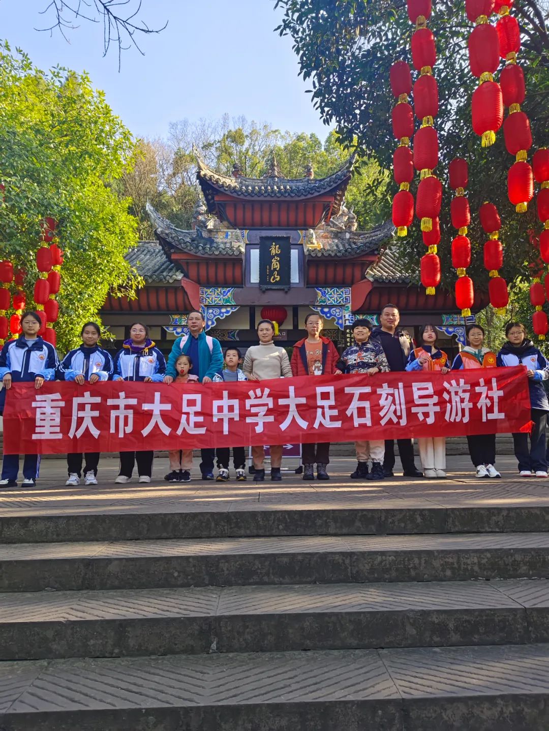 我校大足石刻导游社于春节期间,在老师带领下前往宝顶山石刻和北山石刻两个景区进行志愿服务活动。不仅对大足石刻有了更深入了解,也学到了许多宝贵的文物保护知识和讲解技巧。