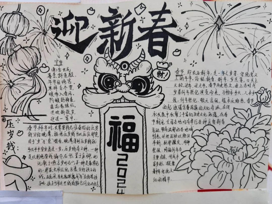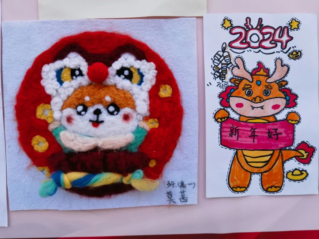 书法、剪纸、折纸、布艺、插花、年画、素描、手抄报等作品,主题鲜明、形式多样、年味十足,引得途经的师生纷纷驻足欣赏、赞不绝口!