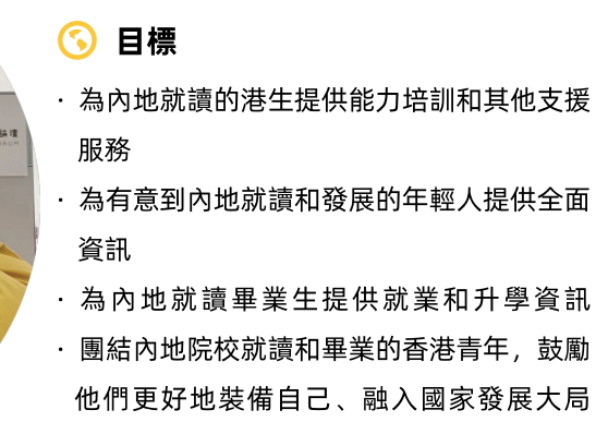 在內地高校就讀的香港學生超過18000人,其中廣東省超過一半。估計在大灣區的內地港生和畢業生有數萬人。得到黃廷方慈善基金的支持,一國兩制青年論壇於2019年成立「內地港澳青年學生之家」,並於廣州大學城設立辦公室,獲得當地政府部門和院校的支持,積極開展服務港生的工作。