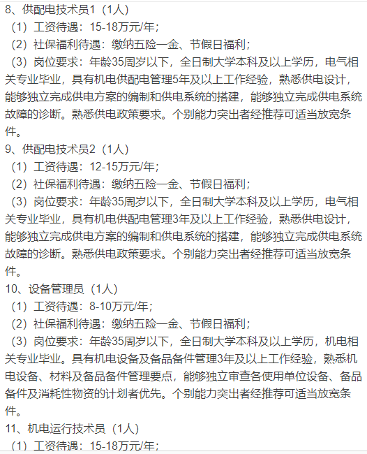 (3)岗位要求:男性,年龄35周岁以下,全日制大专及以上学历,机电相关专业,从事煤矿机电技术员1年以上,有相关职称优先。