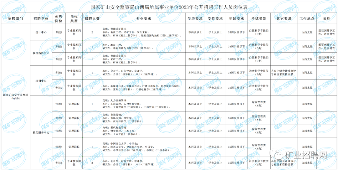 国家矿山安全监察局山西局所属事业单位2023年公开招聘工作人员公告