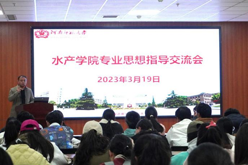 为更好地帮助同学们了解水产专业就业前景与考研趋势、明确未来奋斗方向、巩固专业思想,水产学院于3月19日晚在实训楼203会议室召开专业思想指导交流会。学院相关负责人、教师代表、高年级学生代表以及22级全体本科生参加此次会议。会议由院党委副书记张震主持。