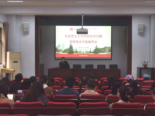 3月16日,马克思主义学院在平原楼108会议室举办2023届考研复试调剂专题辅导会,邀请学院副院长余保刚教授、教师杨柳青博士为学生解读2023年考研复试相关政策,讲解备考方法和注意事项。会议由院党委副书记王秀杰主持。
