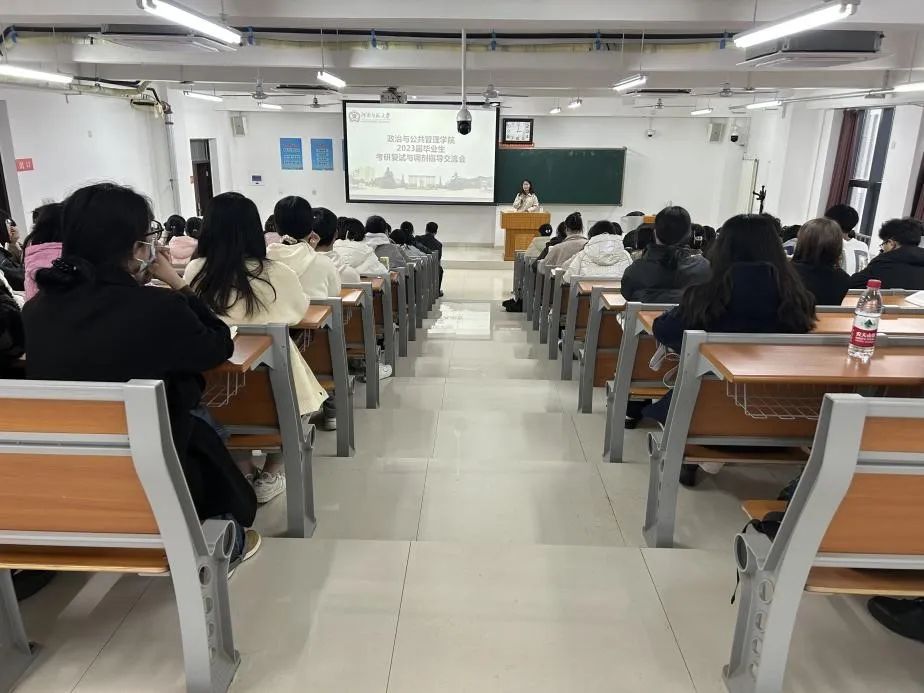 为帮助考研过线学生充分做好复试及调剂准备,3月16日下午,政治与公共管理学院在文昌楼509室召开2023届毕业生考研复试及调剂指导交流会,2019级专、兼职辅导员及140余名学生参与其中。交流会由辅导员孙琳娜主持。