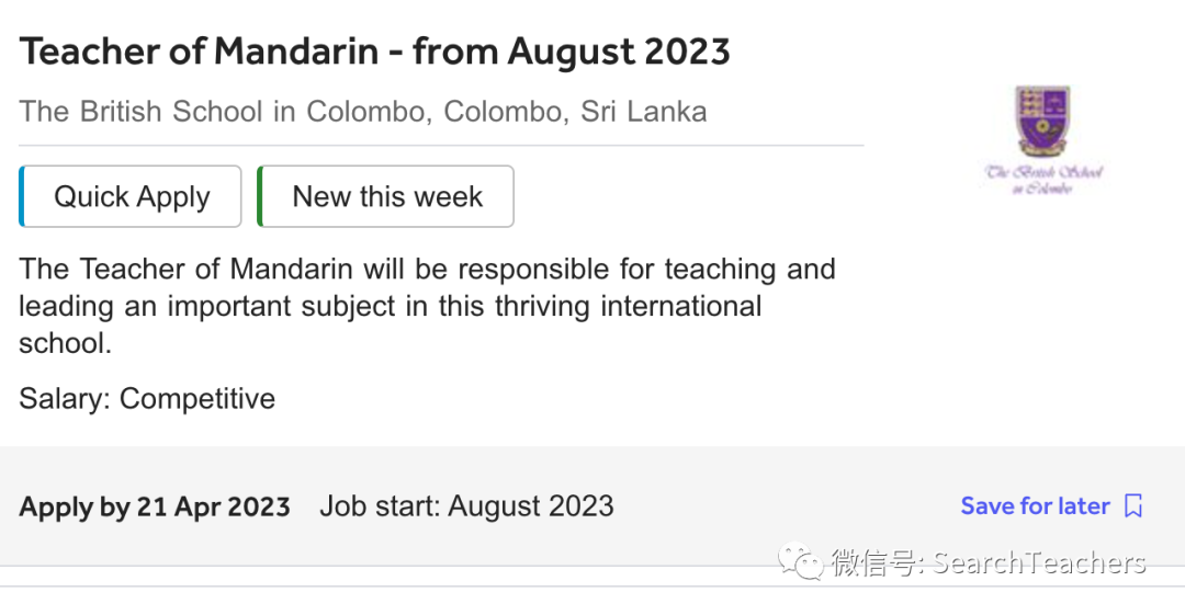 The Directors of the British School in Colombo, Sri Lanka, are seeking to appoint a Head of Mandarin from August 2023.