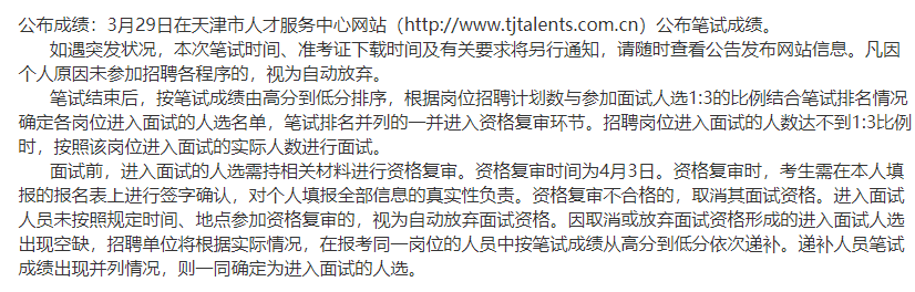 天津市便民专线服务中心2023年公开招聘工作人员成绩查询