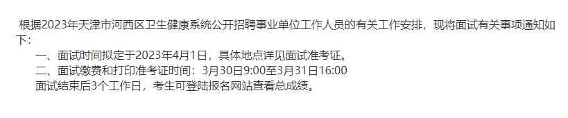 关于2023年天津市河西区卫生健康系统公开招聘事业单位工作人员面试有关安排的通知