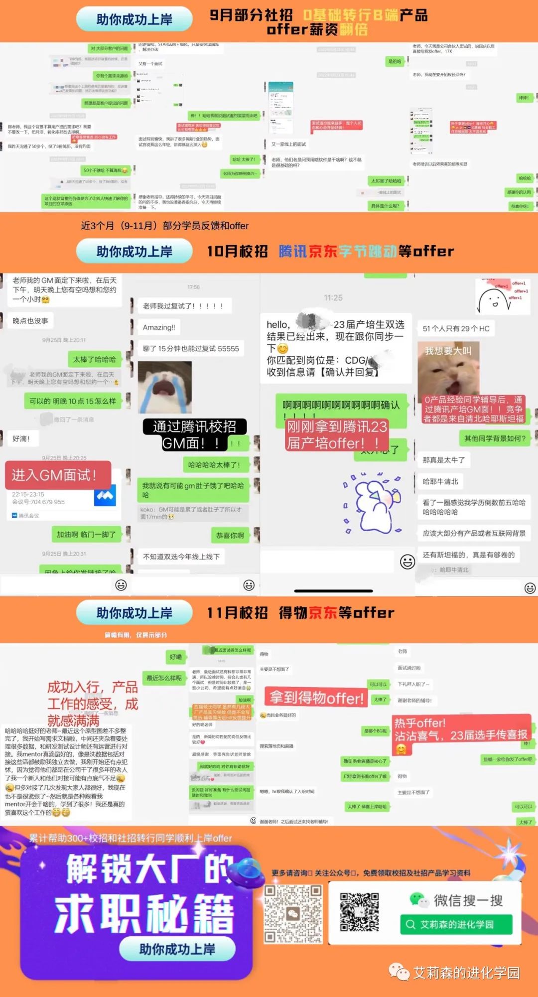 今年校招部分案例截图:腾讯,字节跳动,猿辅导,新东方等数十余家大厂中厂产品经理,产品运营offer
