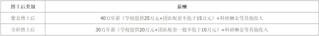4.入选国家“博士后创新人才支持计划”和“博士后国际交流引进计划”者,直接按照紫金博士后聘任,出站后进入师资队伍。入选“博新计划”者,学校全额提供40万年薪以及20万元科研经费支持。
