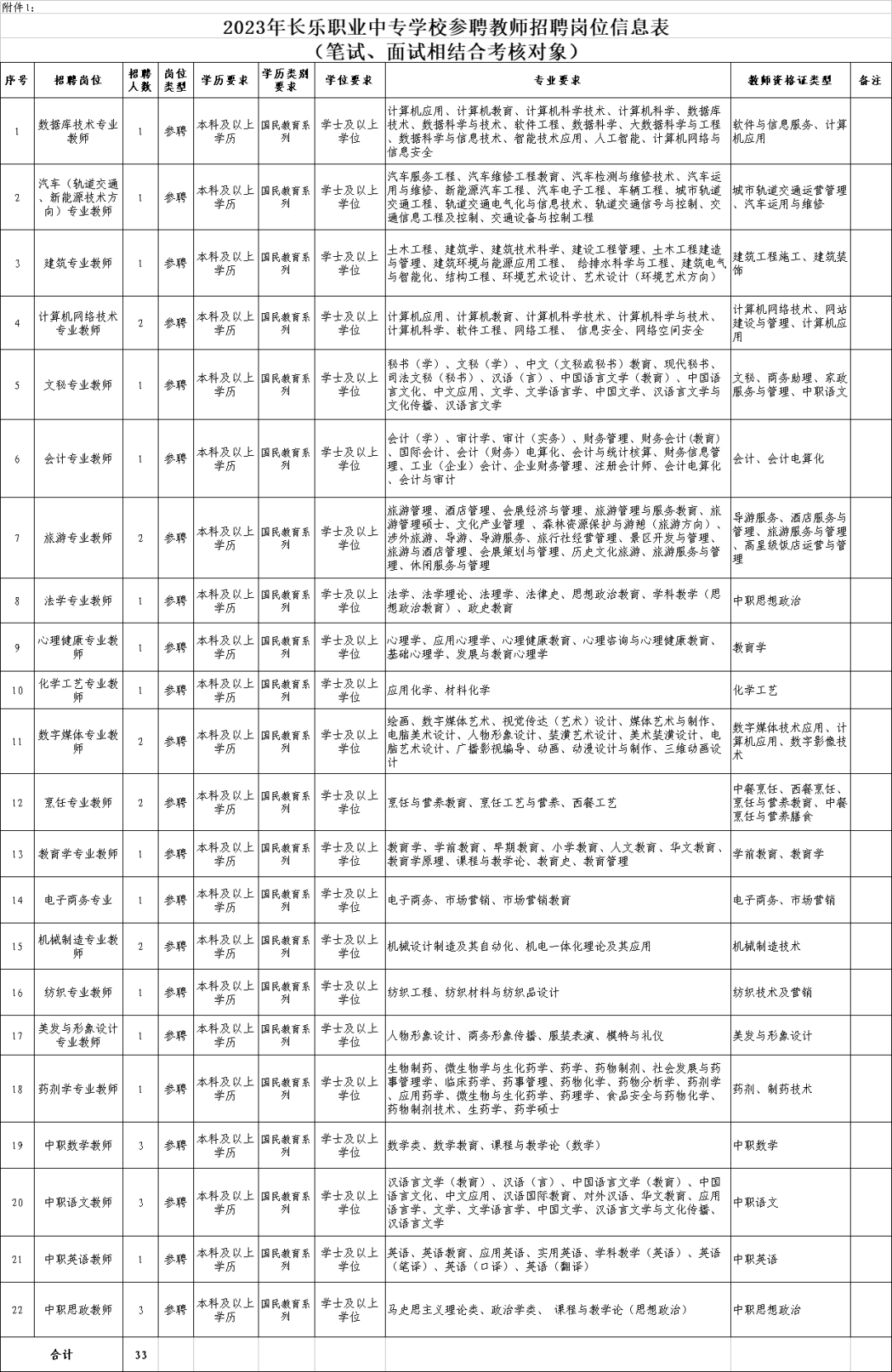 1.2023年长乐职业中专学校参聘教师招聘岗位信息表;