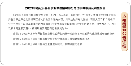 2023年通辽开鲁县事业单位招聘部分岗位核减取消及调整公告