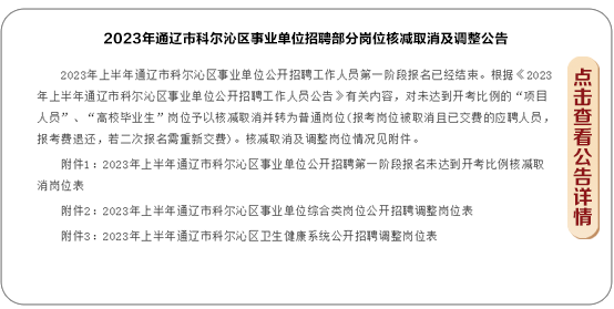 2023年通辽市科尔沁区事业单位招聘部分岗位核减取消及调整公告