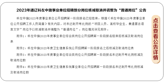 2023年通辽科左中旗事业单位招聘部分岗位核减取消并调整为“普通岗位”公告