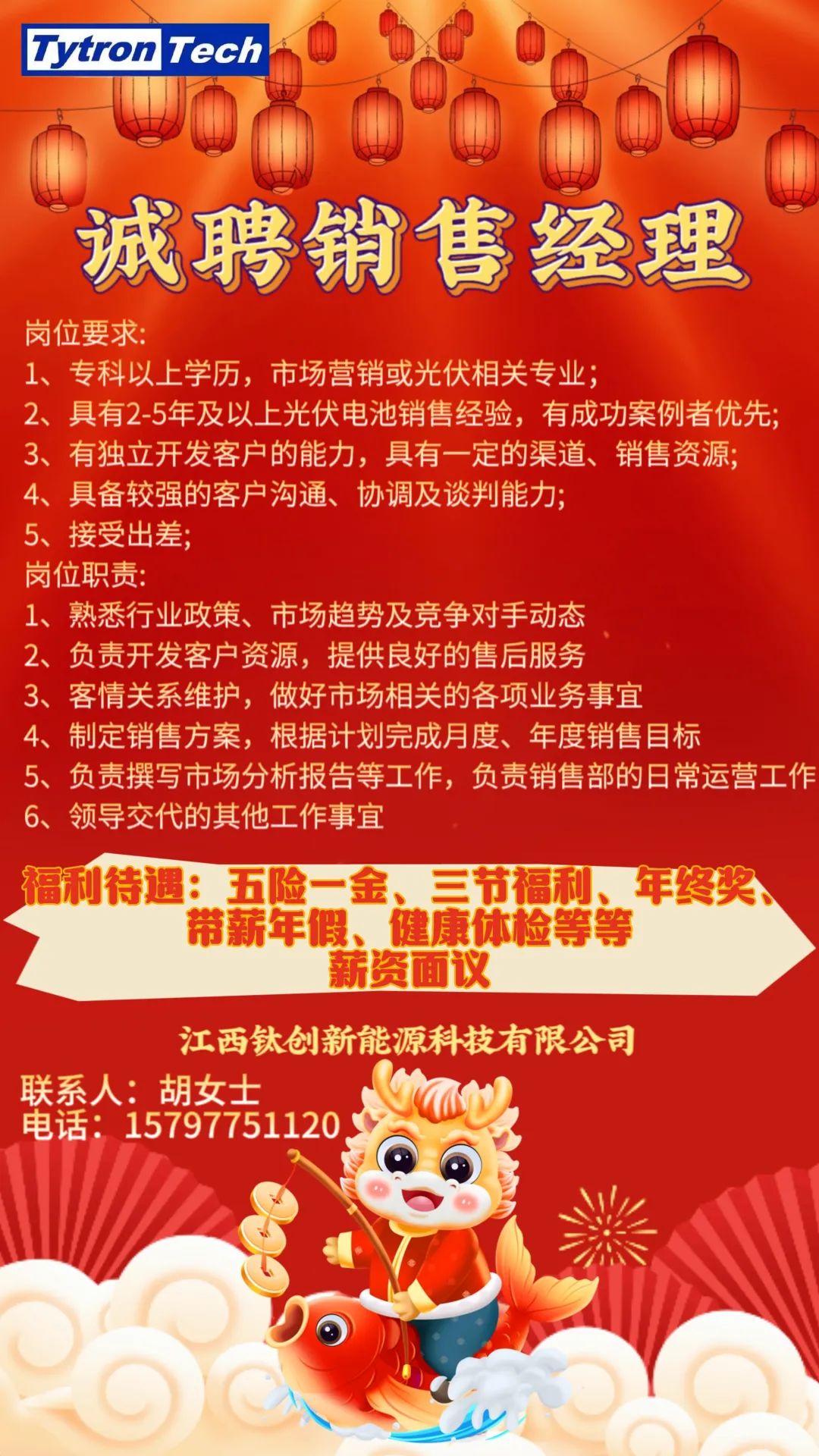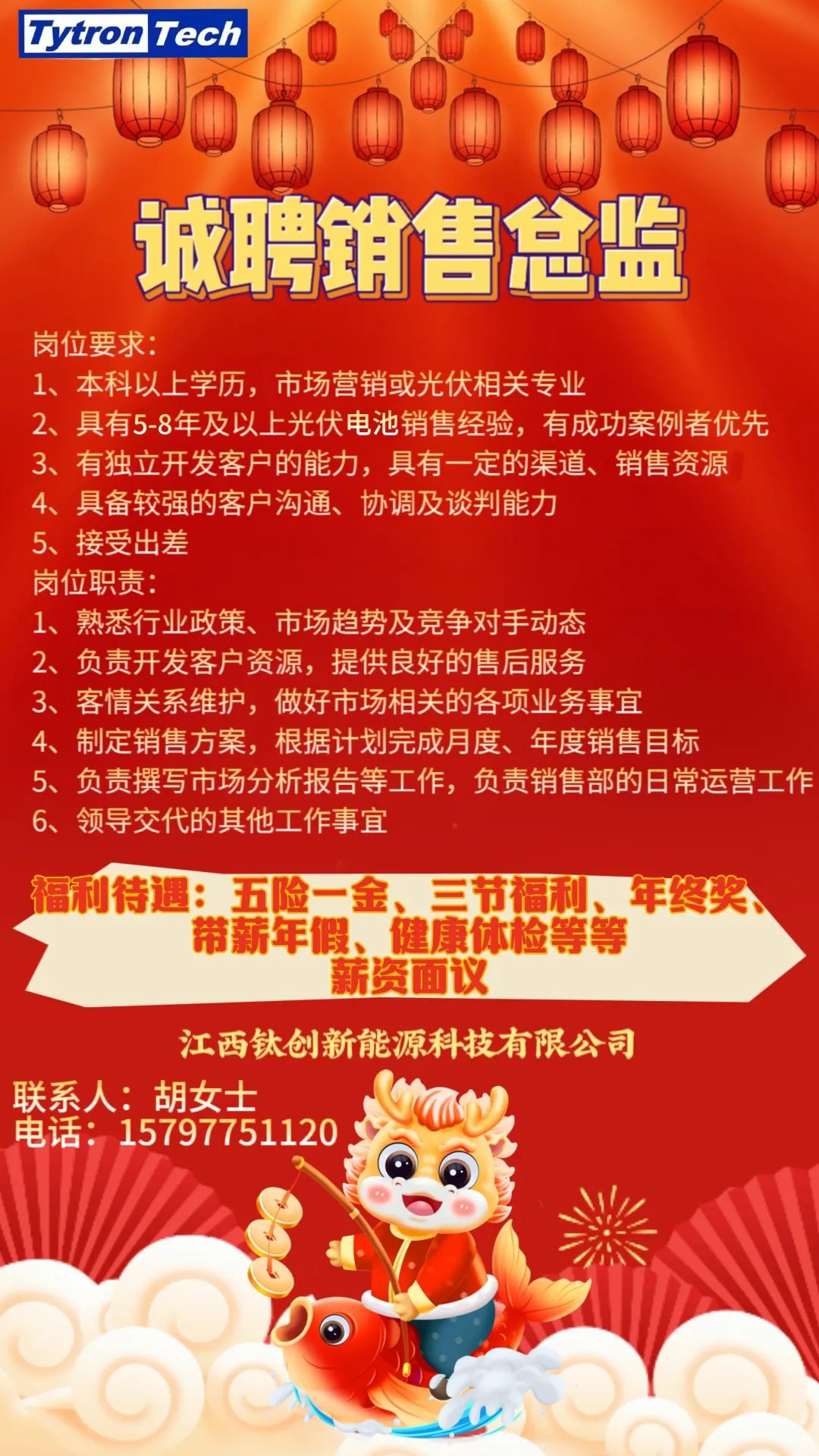 >新秀来袭!江西钛创高薪招聘电池销售总监、销售经理