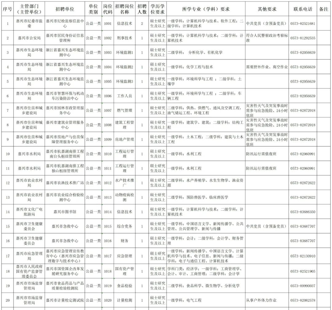 本次公开招聘推出207个岗位,计划招聘高层次人才216名,其中事业单位招聘196名,国有企业招聘20名。具体招聘单位、招聘岗位、招聘人数和相关要求等见附件1《2024年嘉兴市事业单位公开招聘高层次人才计划表》、附件2《2024年嘉兴市国有企业公开招聘高层次人才计划表》。