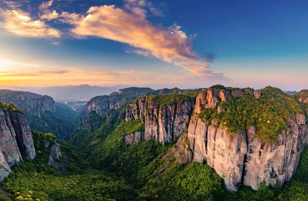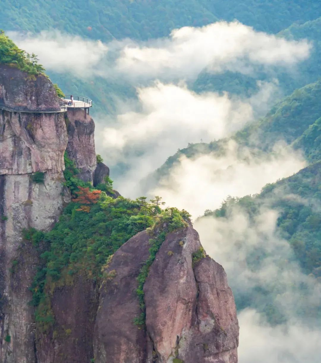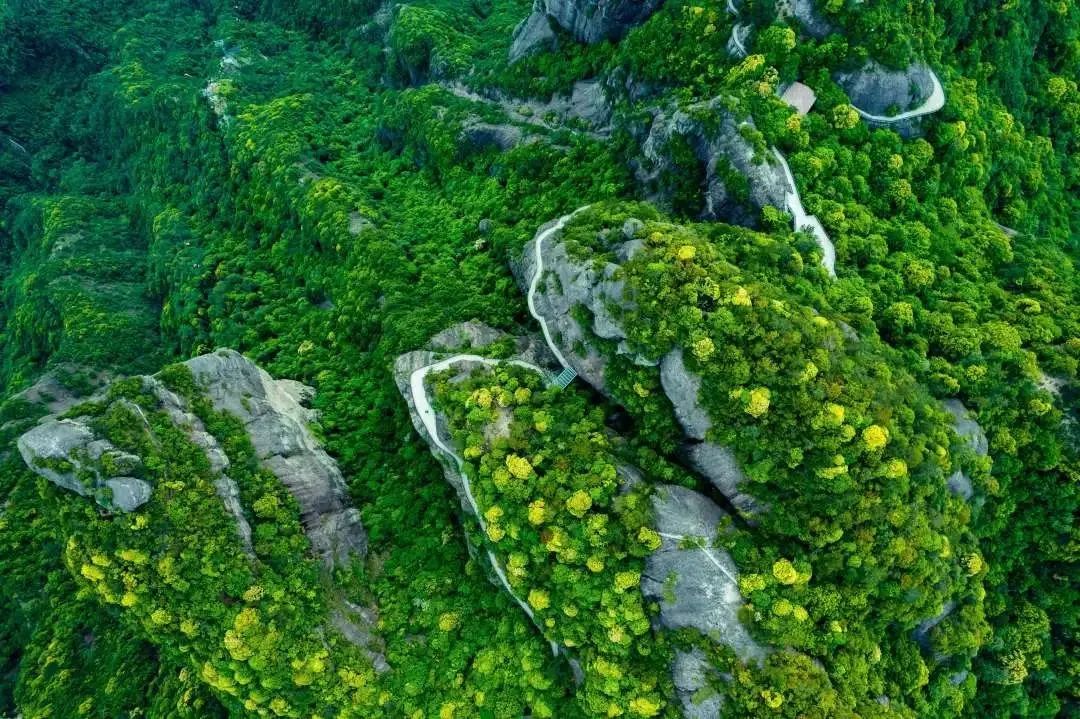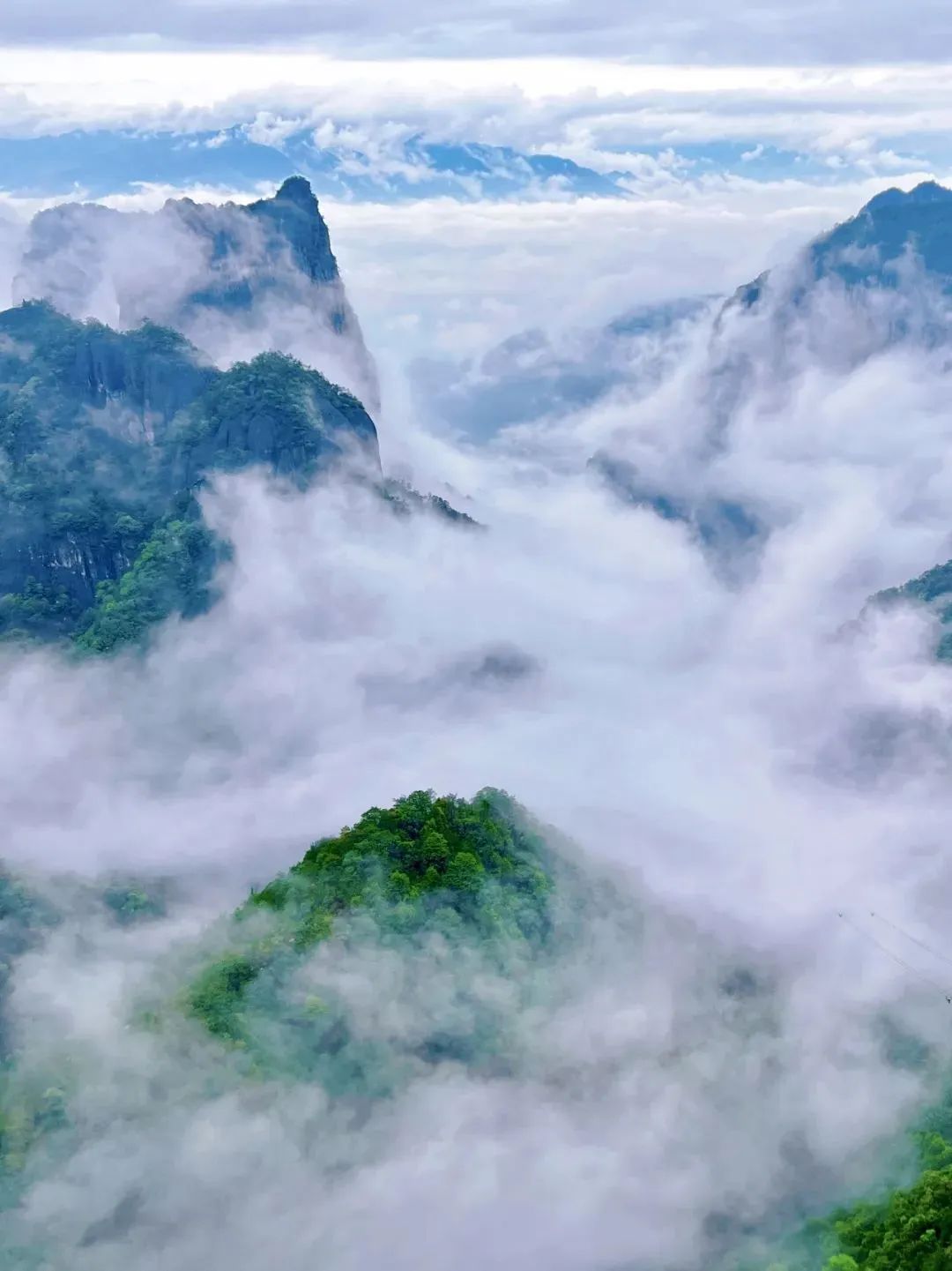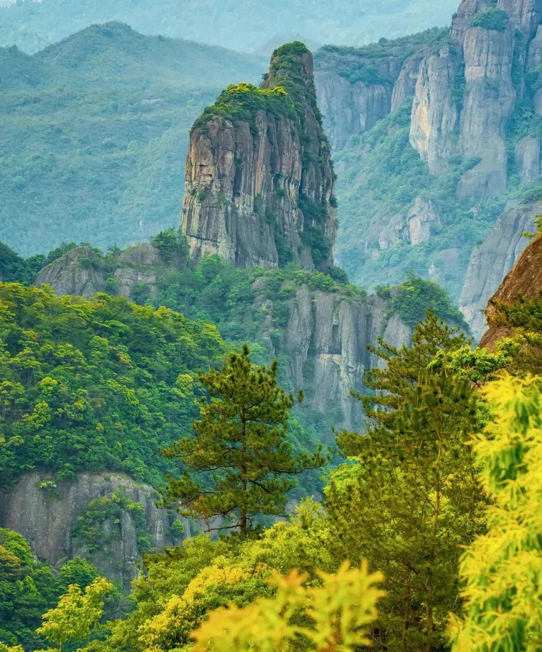 火山喷发造就的火山流纹岩地貌形成了这里的群山底色;长久的风雨剥蚀,自由生长的植物形成了这里的奇峰林立、云海雾涛、山色迷离的迷人景色。