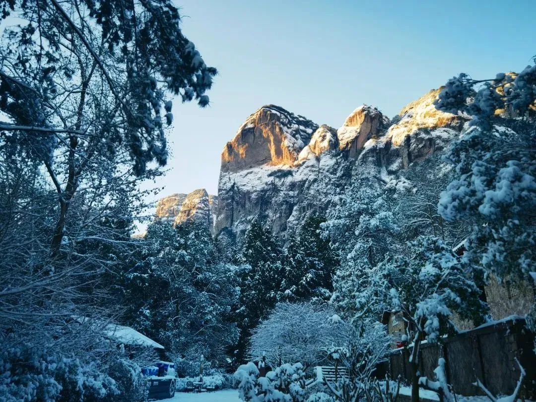 而等到挂上冰凌雾凇,覆盖白雪皑皑的时候,换上了“新皮肤”的神仙居,更是让想象中的仙境走入人间。