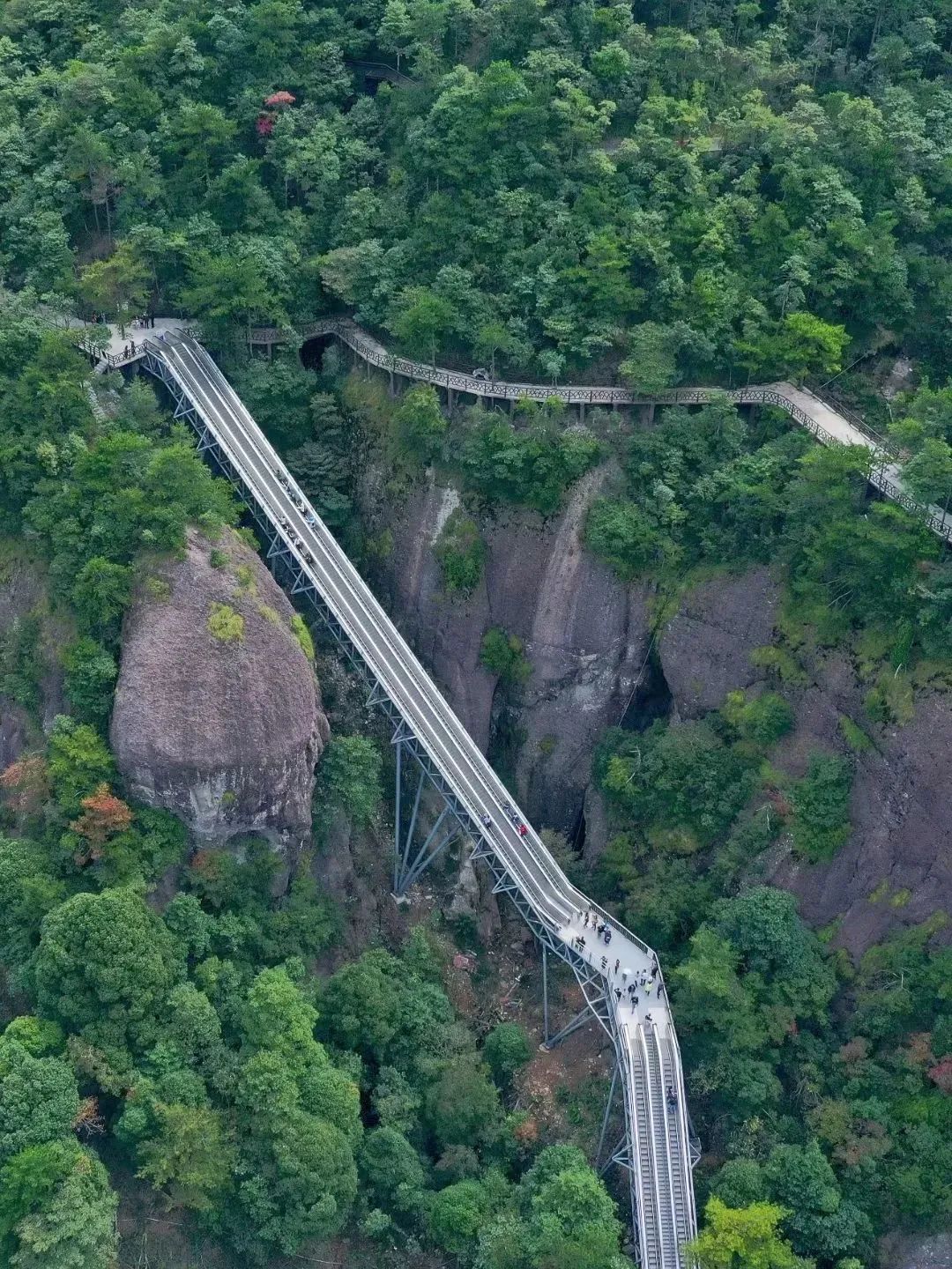 比如,那些横贯峡谷的桥梁。桥梁连接着群峰,以优雅的姿态与周边的环境融合,又成为景区独树一帜的新标志。