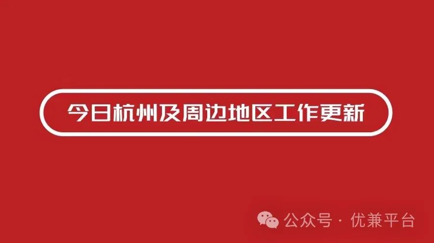 今日份跟新杭州及周边兼职工作100多个信息,供大家自由选择,小优已为您更新,有任何需求或者问题也可以联系平台客服小优噢!