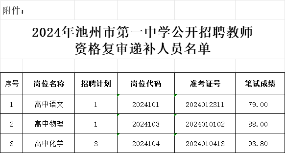 附件:2024年池州市第一中学公开招聘教师资格复审递补人员名单