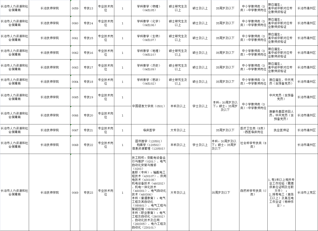 4.在军队服役5年(含)以上高校毕业生退役军人可按服务基层项目人员对待,报考“服务基层项目人员专门岗位”。报考兵教师专门岗位条件:征集地为长治市(或户籍地为长治市)退役并考核合格的大学生。