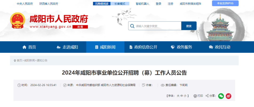 >2024年咸阳市事业单位公开招聘(募)工作人员公告(含礼泉)