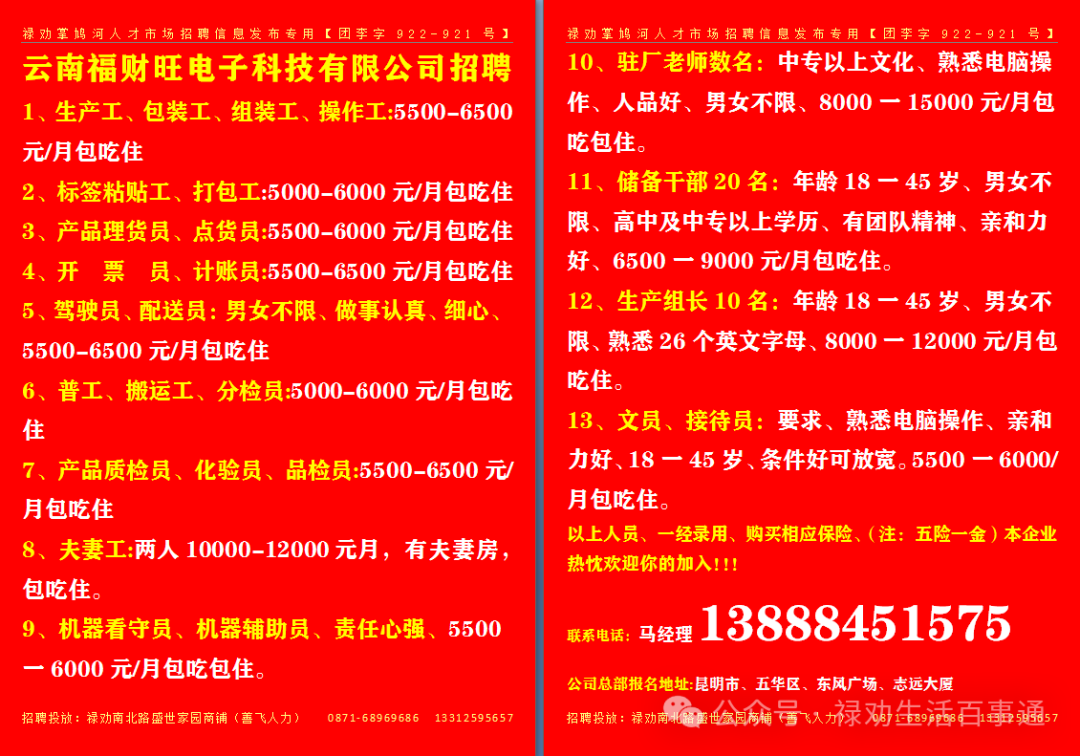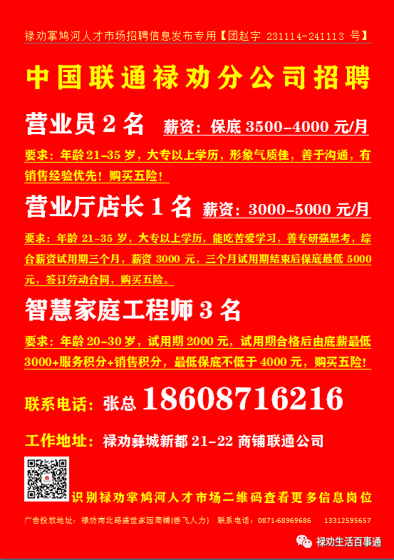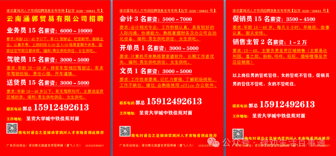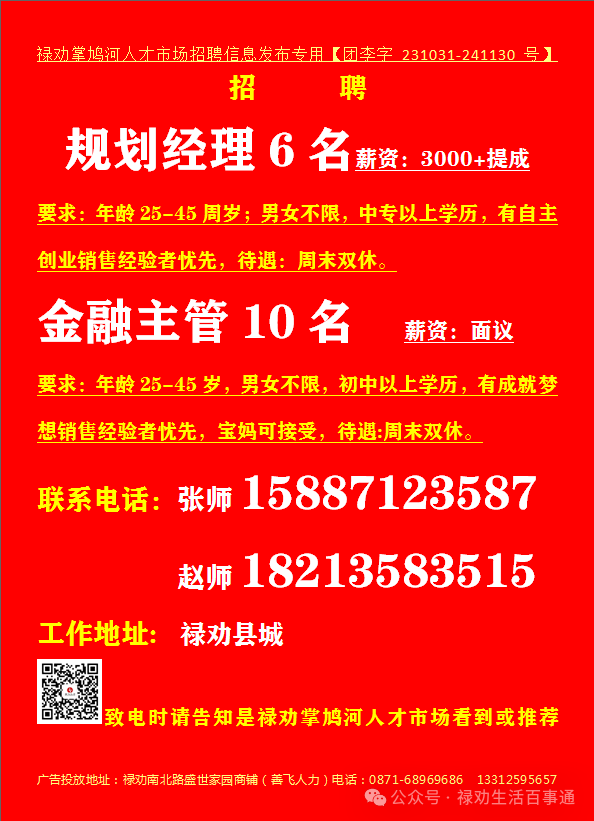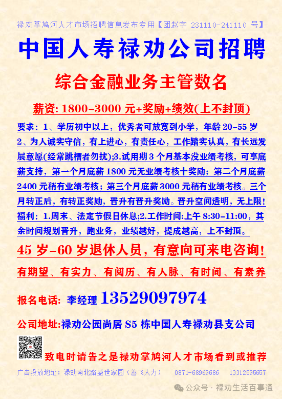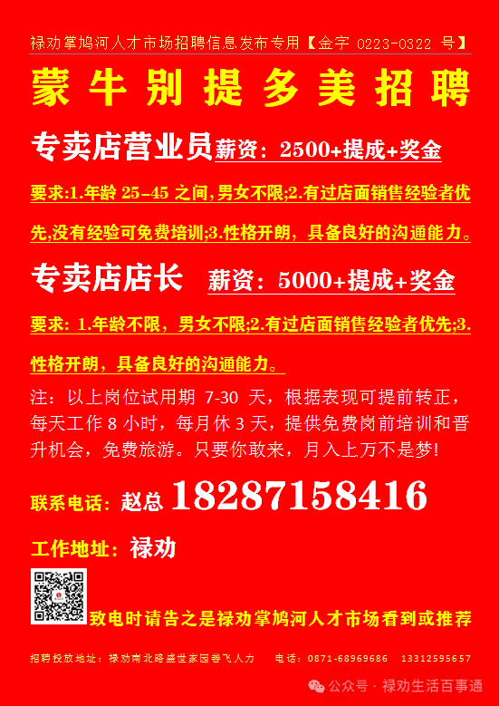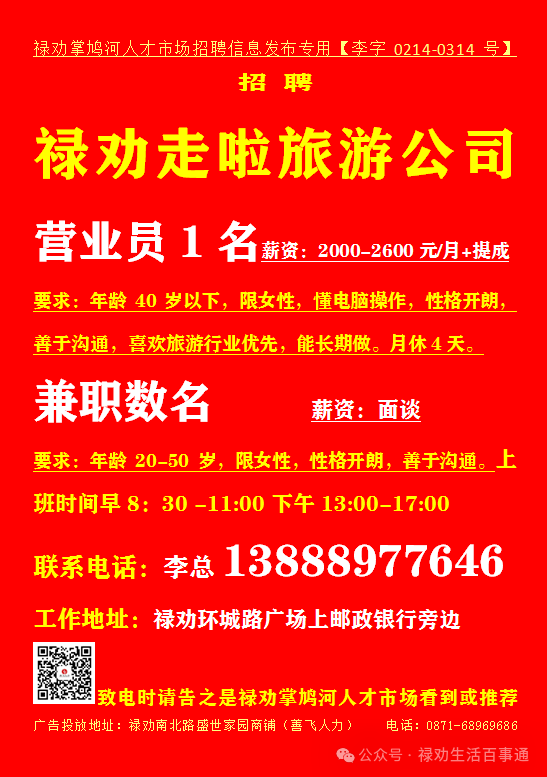 >【禄劝招聘】禄劝本地企业招聘信息汇总第0228期(禄劝人都在这里找工作)