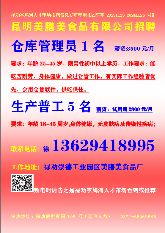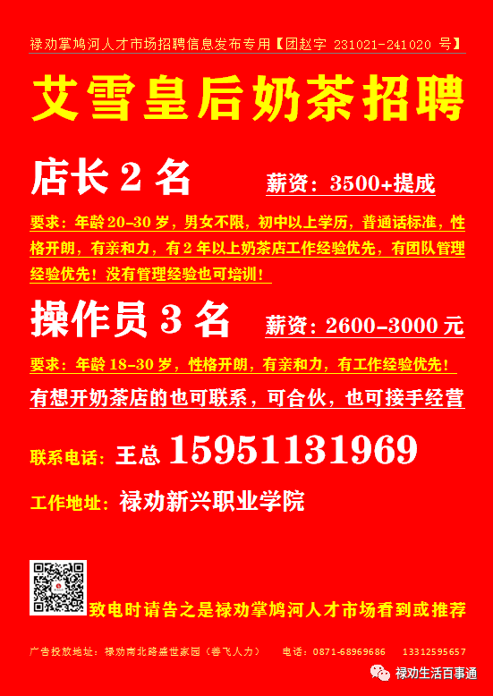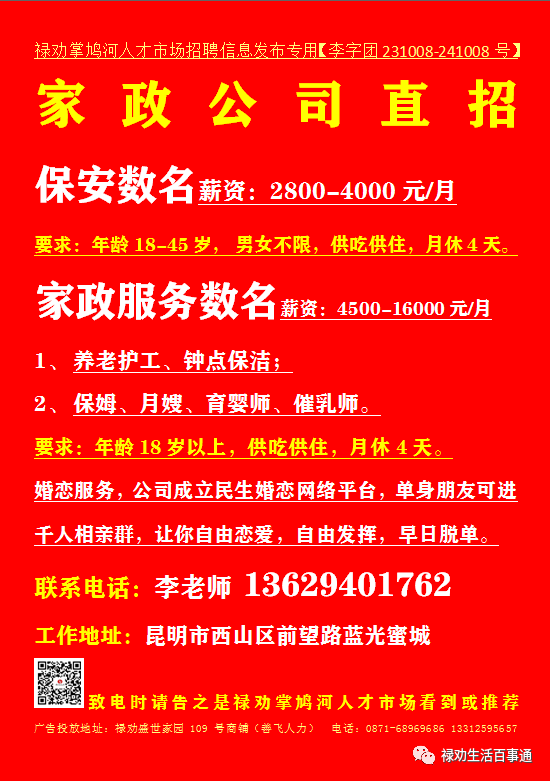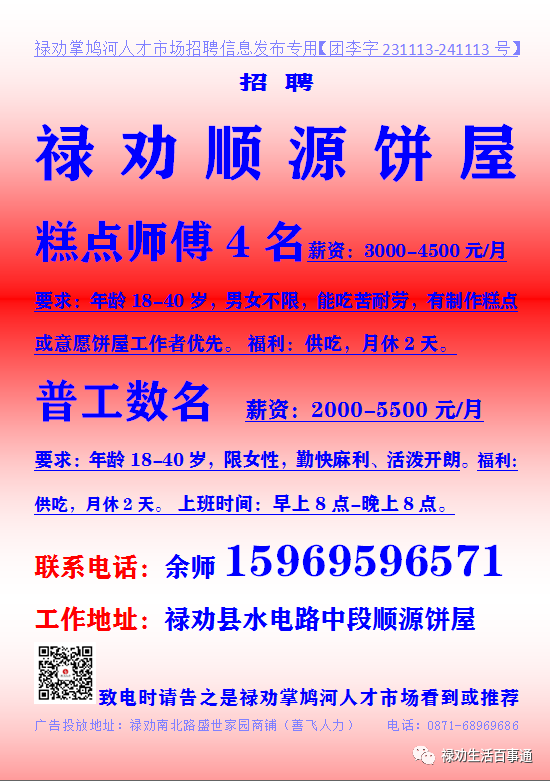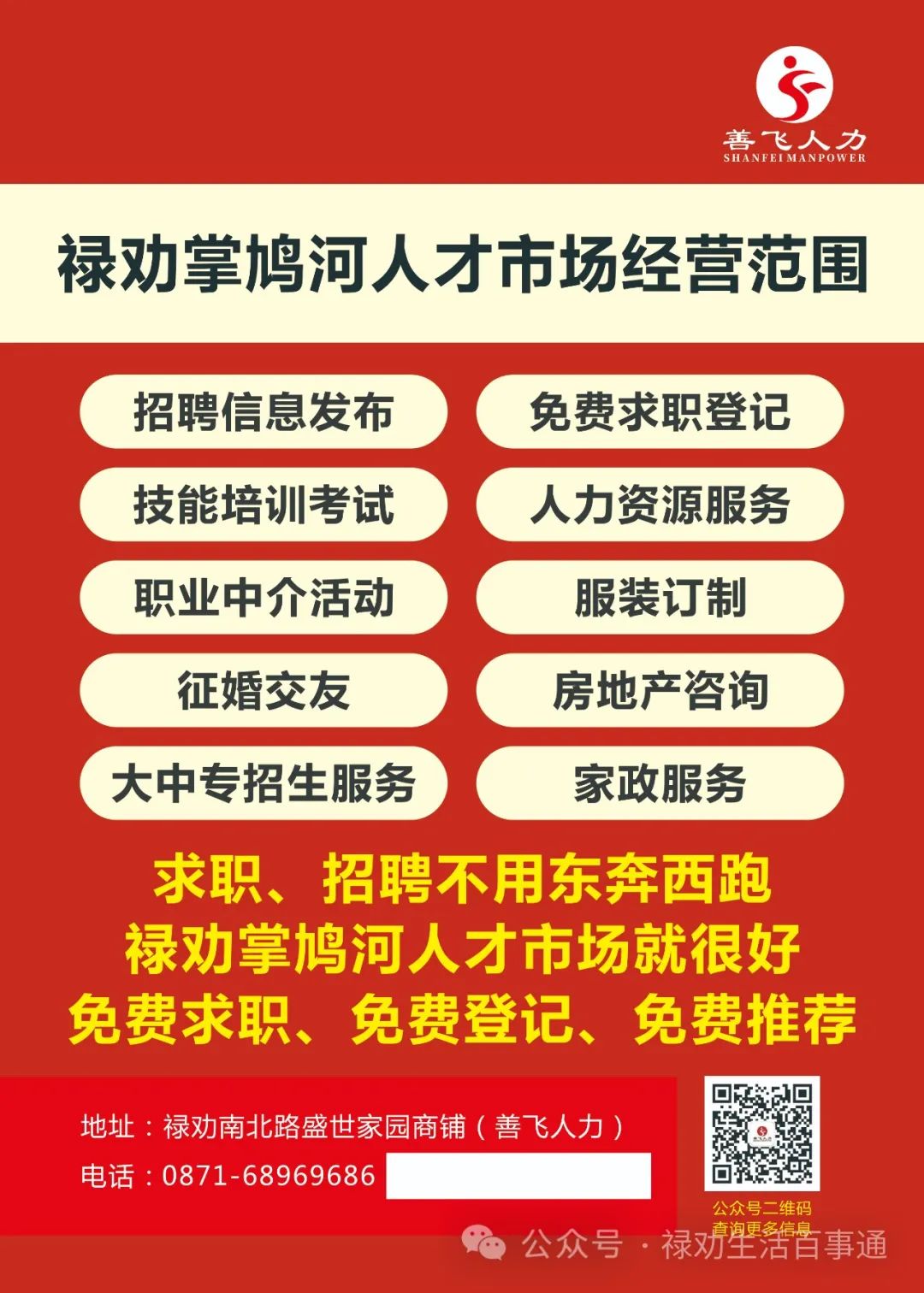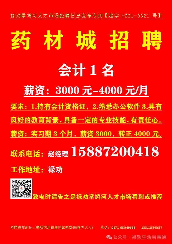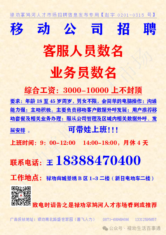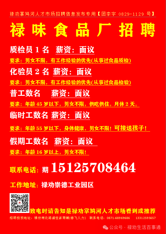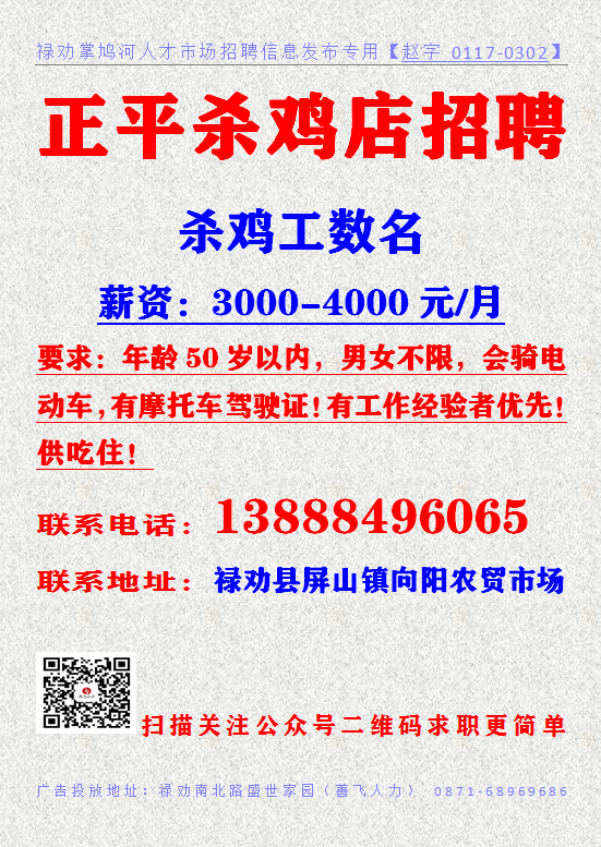 欢迎关注禄劝掌鸠河人才市场客服微信号