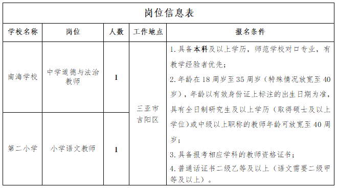 >三亚市吉阳区公办中小学编外教师招聘公告