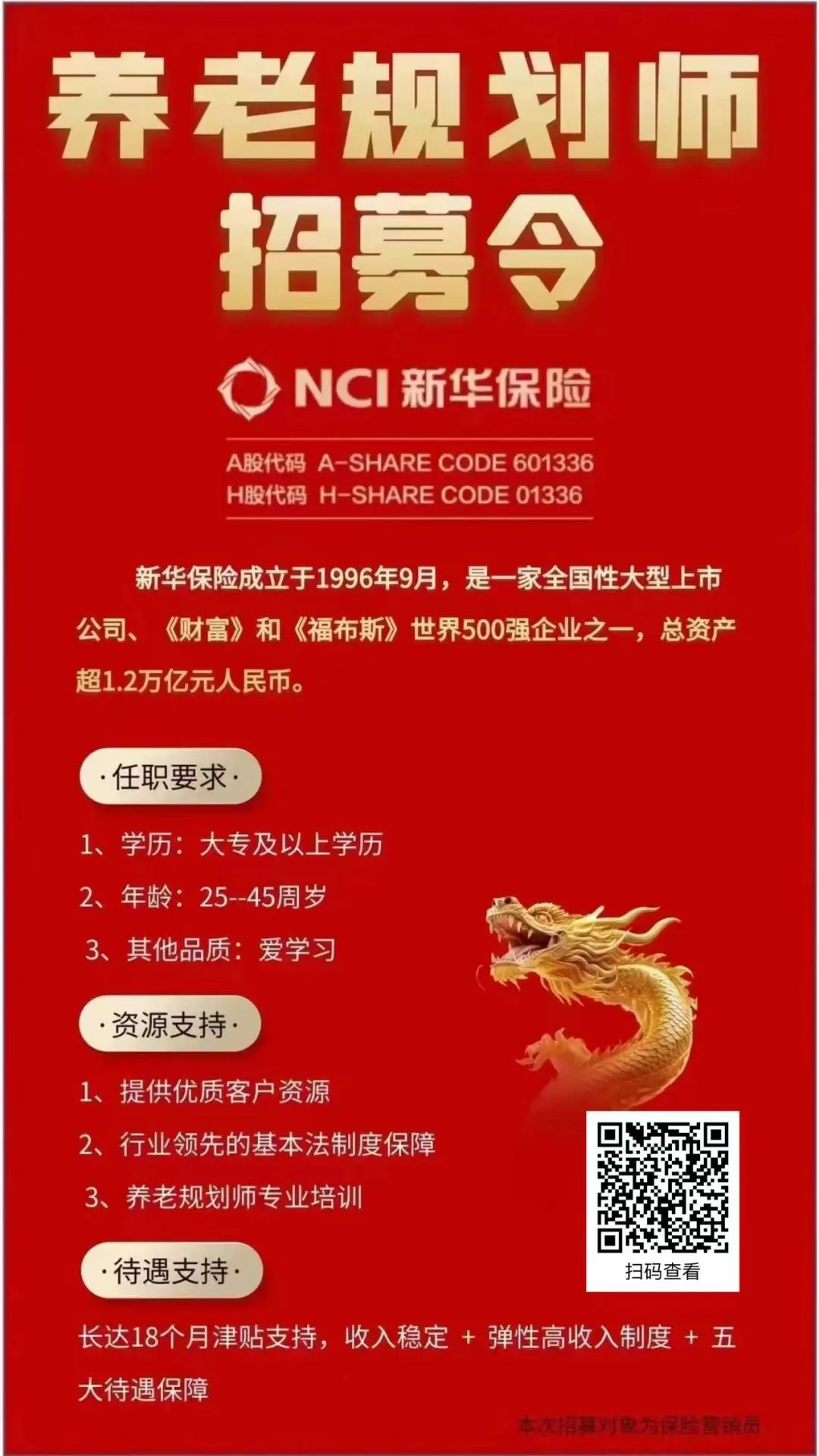 招聘职位:养老规划师5名