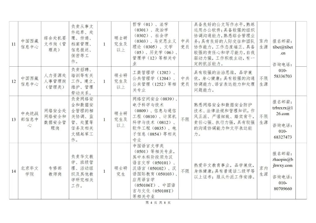 根据工作需要,按照《事业单位人事管理条例》和事业单位公开招聘有关政策规定,中央统战部直属事业单位2024年度面向应届高校毕业生公开招聘工作人员29名。
