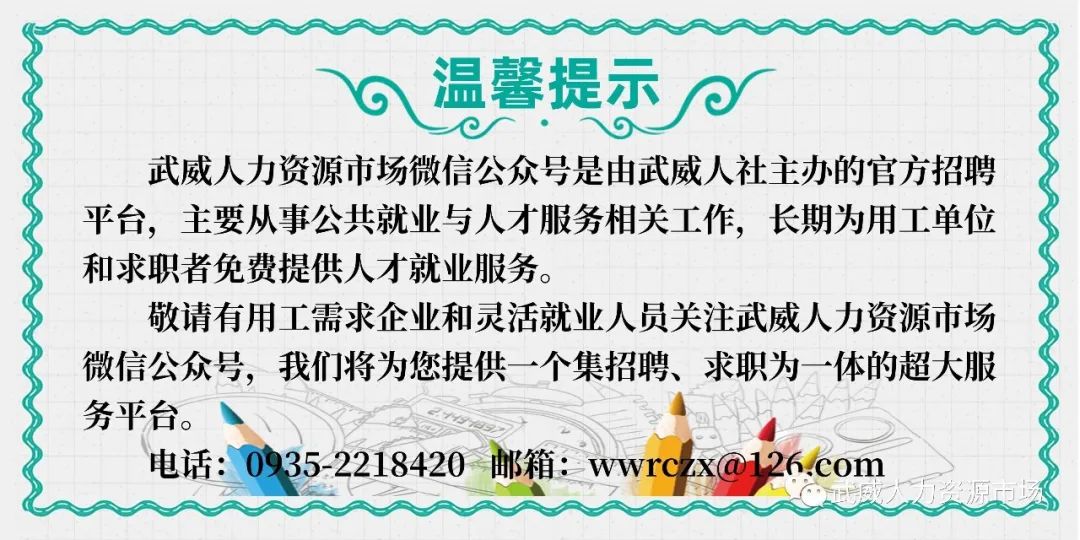 办理入职手续地址:甘肃省武威市凉州区东大街和平路9号(火车站乘10路公交到东小十字向北30米处)