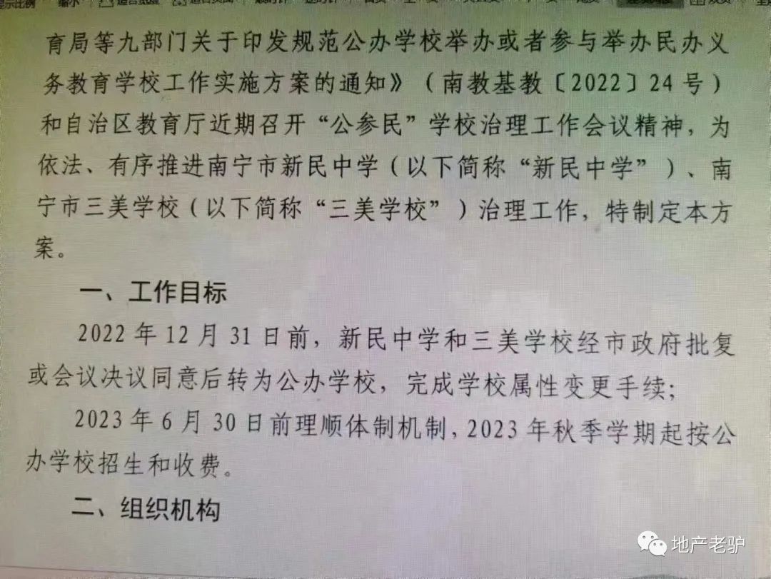 同样是去年年底,三美、新民学校转公消息传出不久后,西大附中内部方案流出,称要在2022年12月底完成完成「民转公」属性变更。