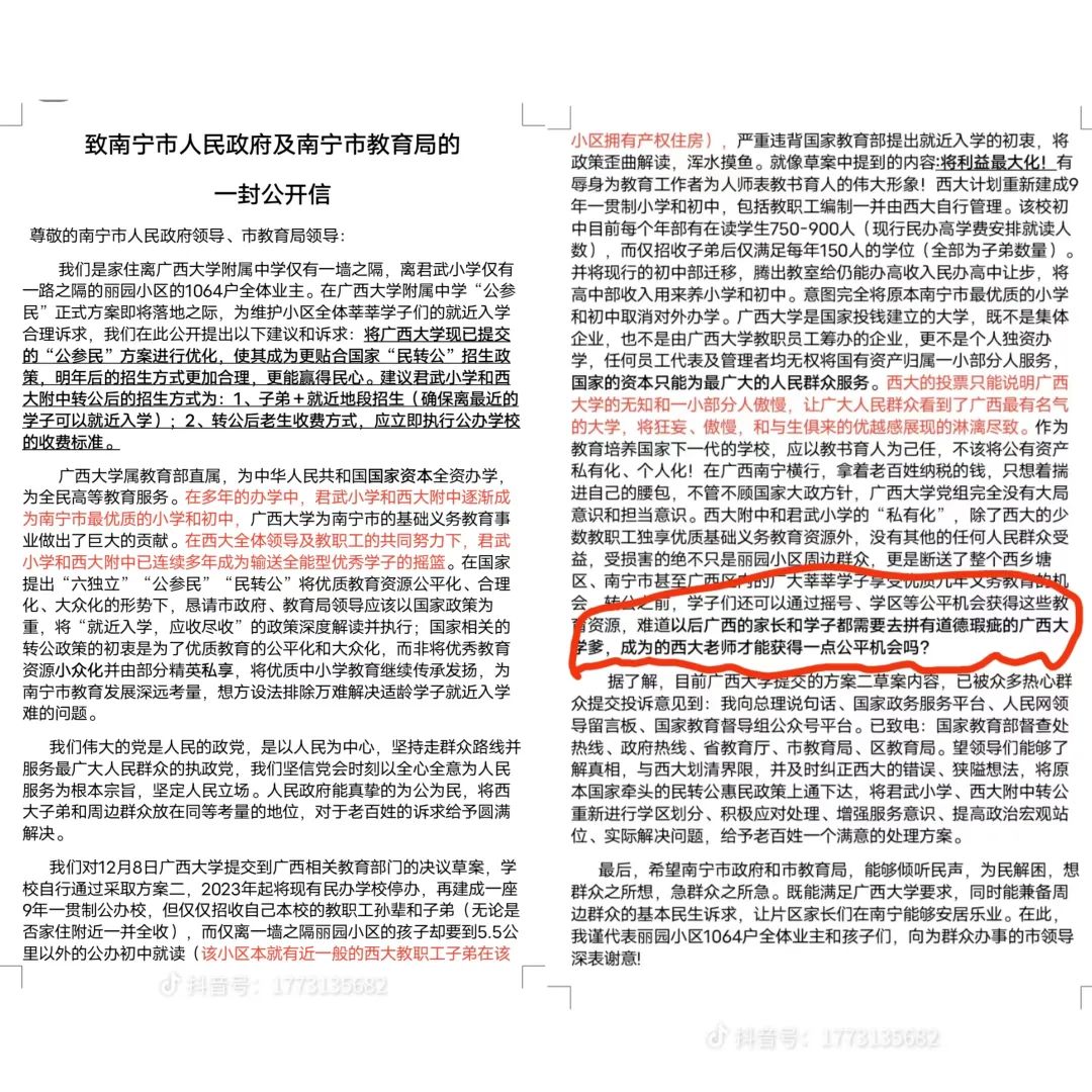 不过,文件传出不久,就有声音出来反对广西大学附属学校作为子弟学校,要求增加地段生。最近我还从西大内部人士处了解到: