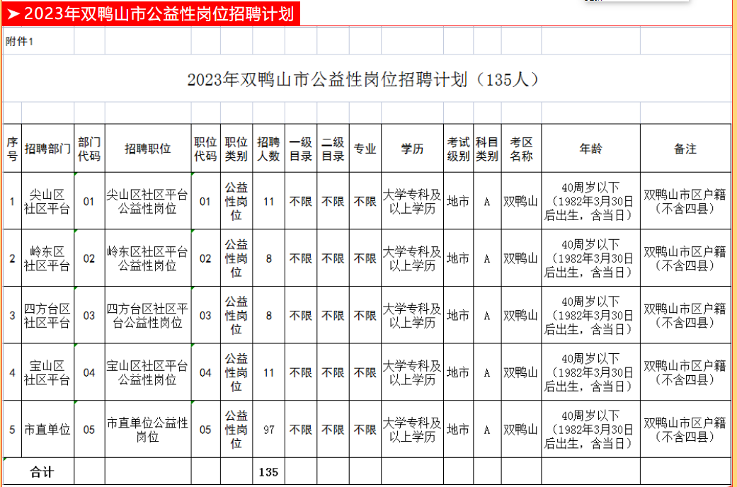 附件1: 2023年双鸭山市公益性岗位招聘计划