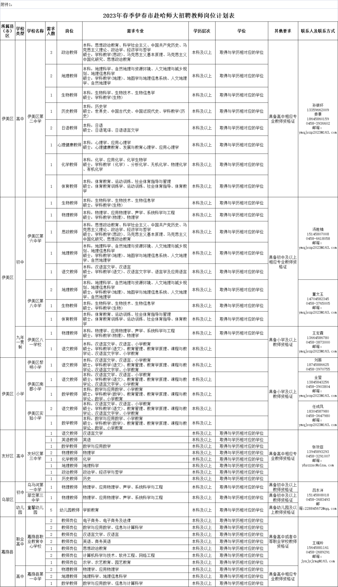 报考者对有关职位的专业、学历、学位等资格条件有疑问需要咨询时,可直接与招聘单位联系,联系方式详见《2023年春季伊春市赴哈师大招聘教师岗位计划表》。
