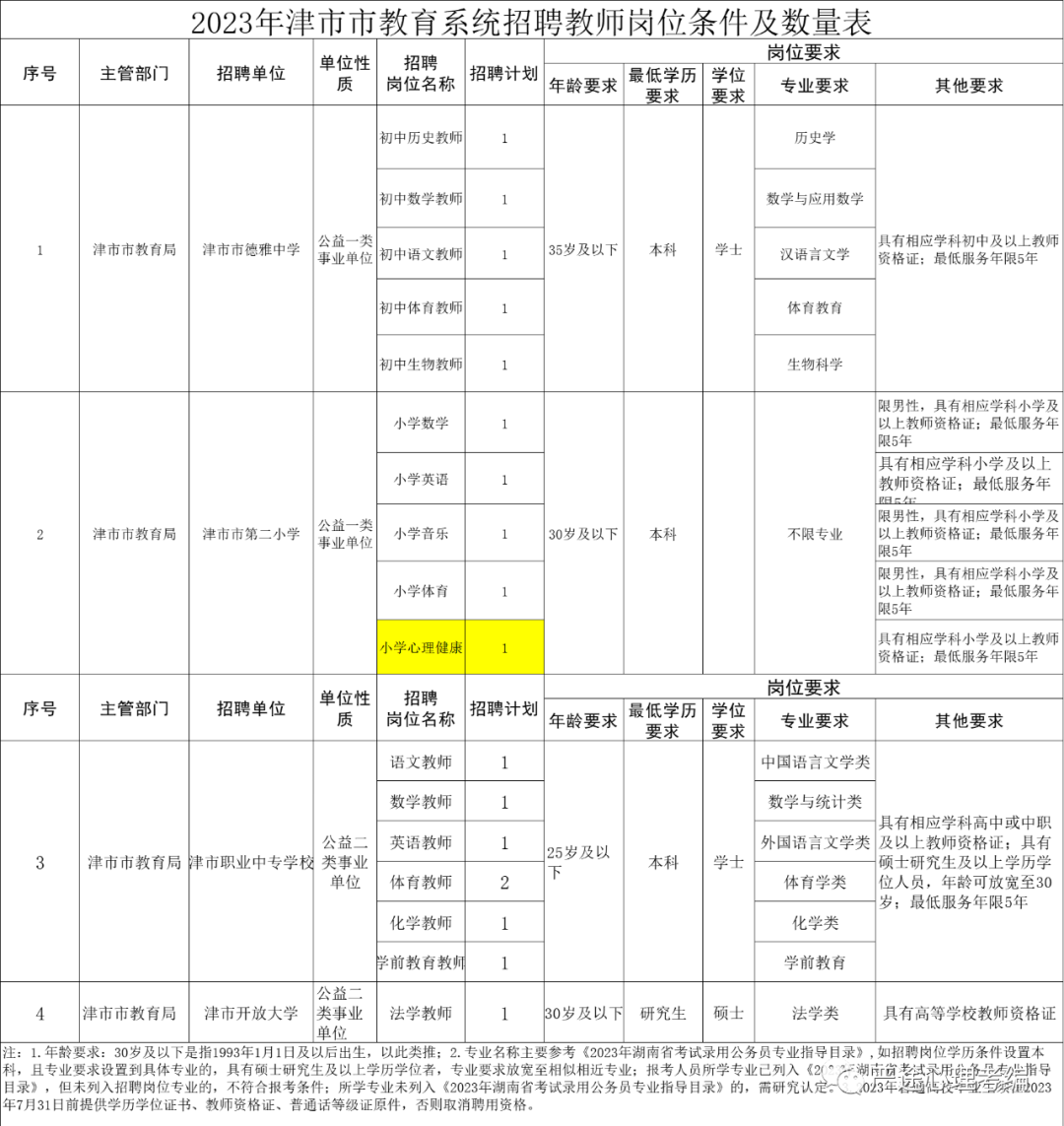 具体条件见《2023年津市市教育系统教师招聘岗位条件及计划表》(附件1)