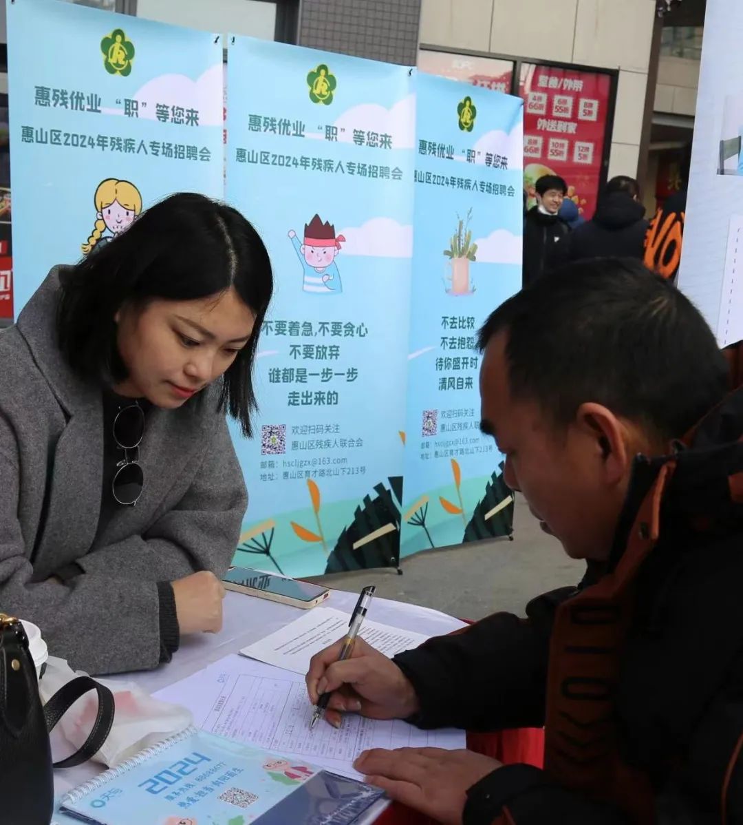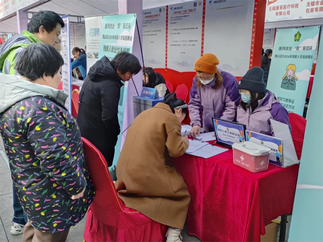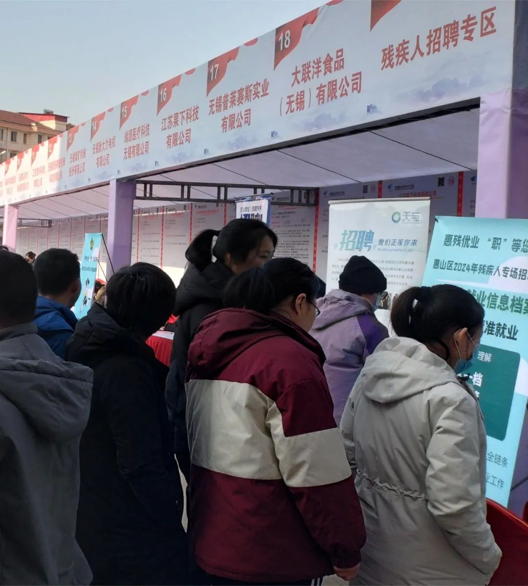 为全面贯彻党的二十大精神,坚决落实党中央、国务院关于就业工作的部署,营造2024年残疾人就业的良好开局,2月27日上午,惠山经开区(长安街道)在长安哥伦布广场举办的“有缘相‘惠’,‘职’等您来”2024年春风行动暨就业援助月线下招聘会火热进行中,本次招聘会设有残疾人招聘专区,较往年相比,今年用工企业和岗位需求不断增加,涵盖无锡煤矿机械、端源医疗、江苏果下科技、无锡普莱赛斯、无锡新大力电机、大联洋食品等众多企业,提供生产操作工、采购员、项目工程师、人事专员、质检、设计师、会计、销售、仓管员等就业岗位78个,涉及机械制造、医疗、科技、电气、食品等多个行业领域,给残疾群众带来更多选择空间。