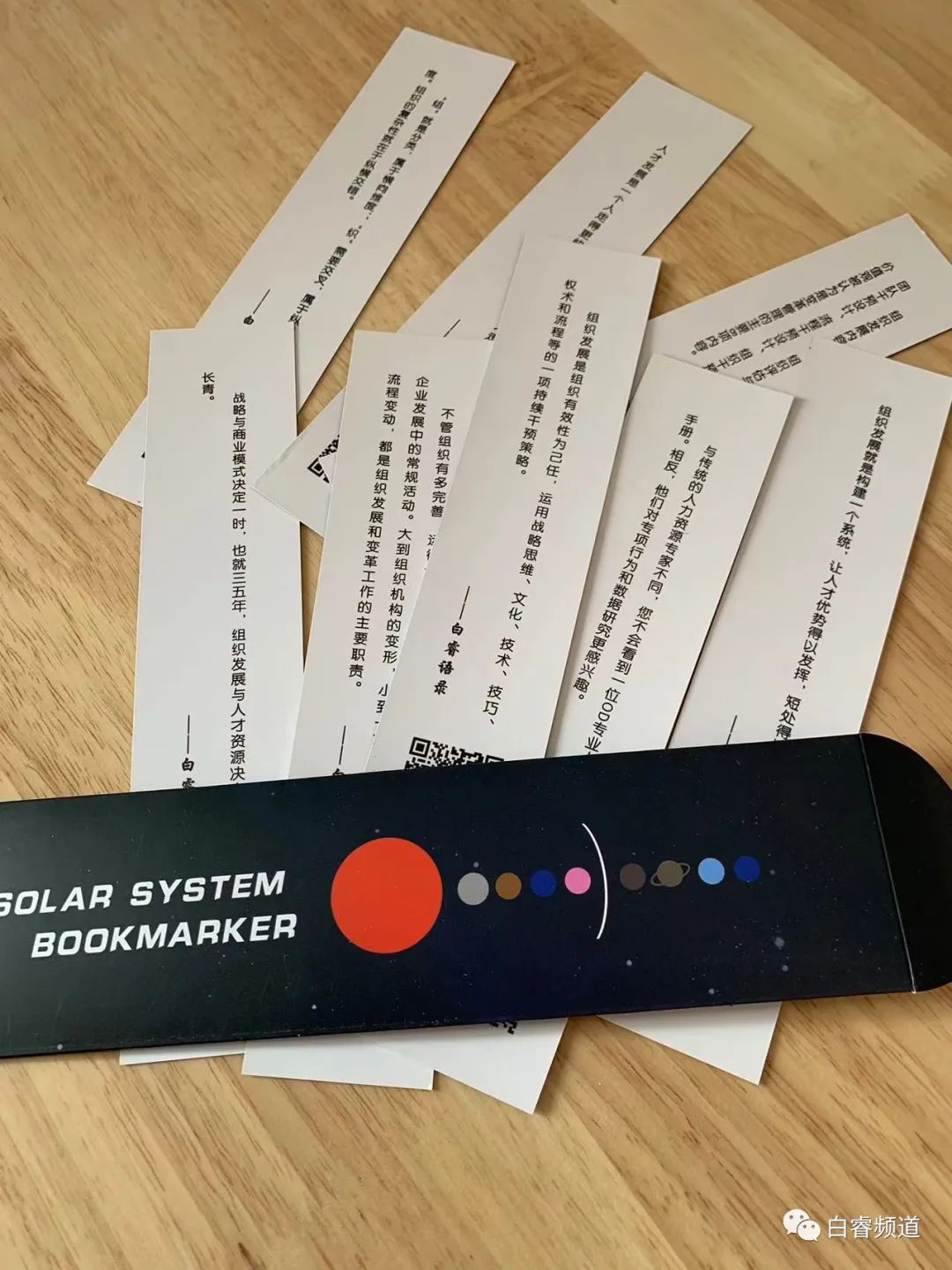 很多小伙伴们喜欢白睿老师在《组织诊断实践》《组织设计与业务流程重组》《任职资格搭建和胜任力模型》等公开课上使用的书签