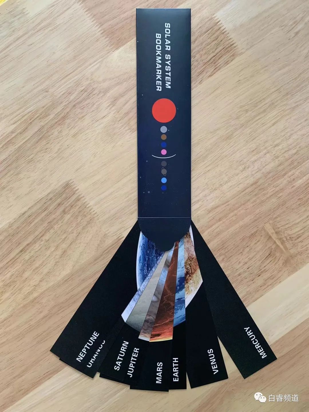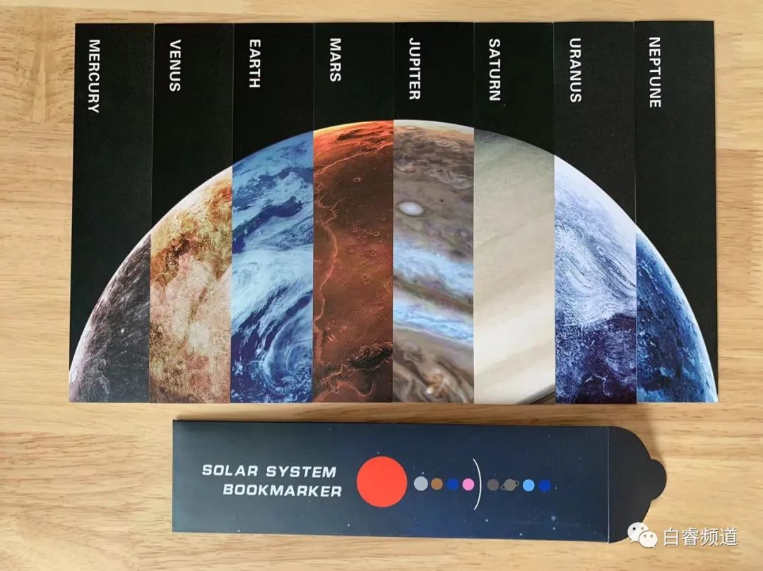 本款书签设计灵感来自太阳系的八大行星,以每一个行星的片断截屏图案为基础,组合起来就是一套完整的半球。