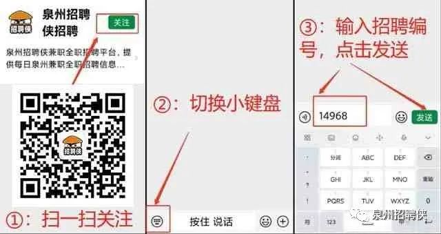 3️⃣:联系请备注:泉州招聘侠
