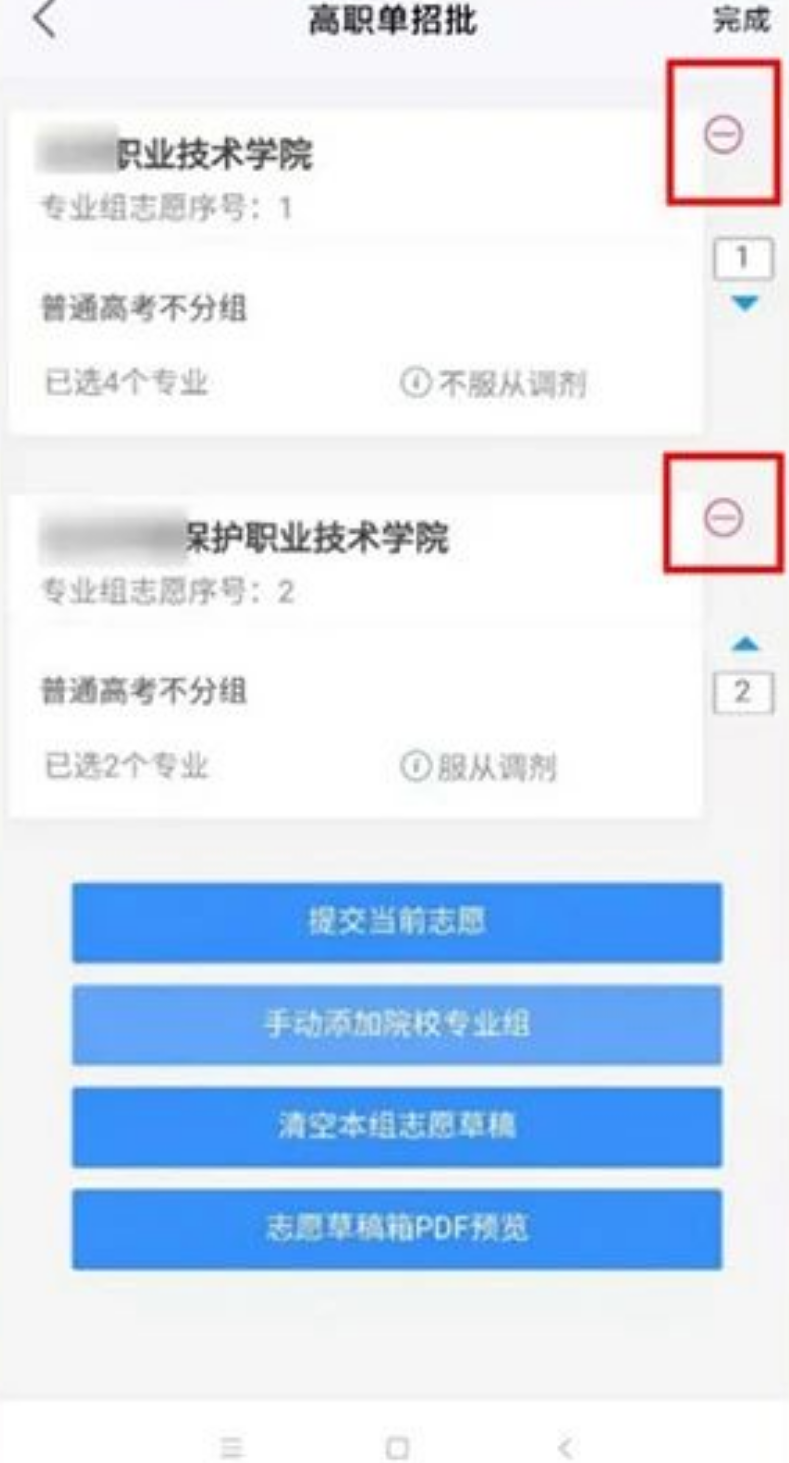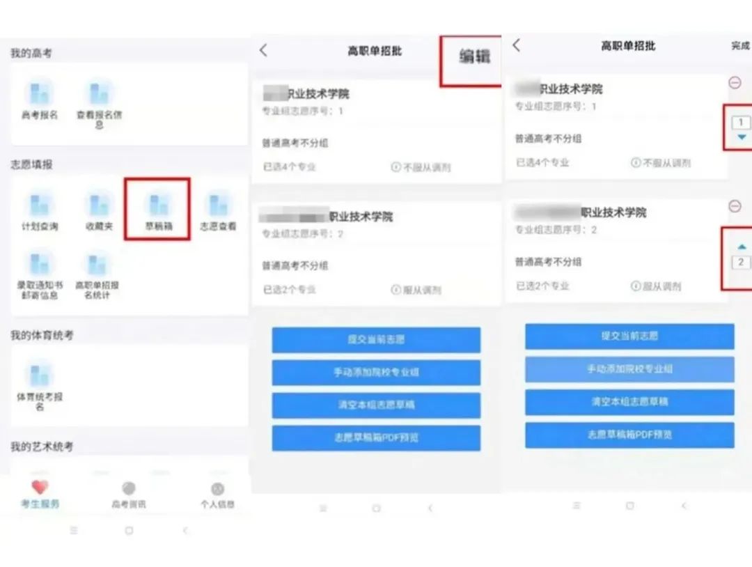 点击右上角【编辑】,可以直接输入志愿序号或使用箭头标签上下移动,对院校专业组进行排序。