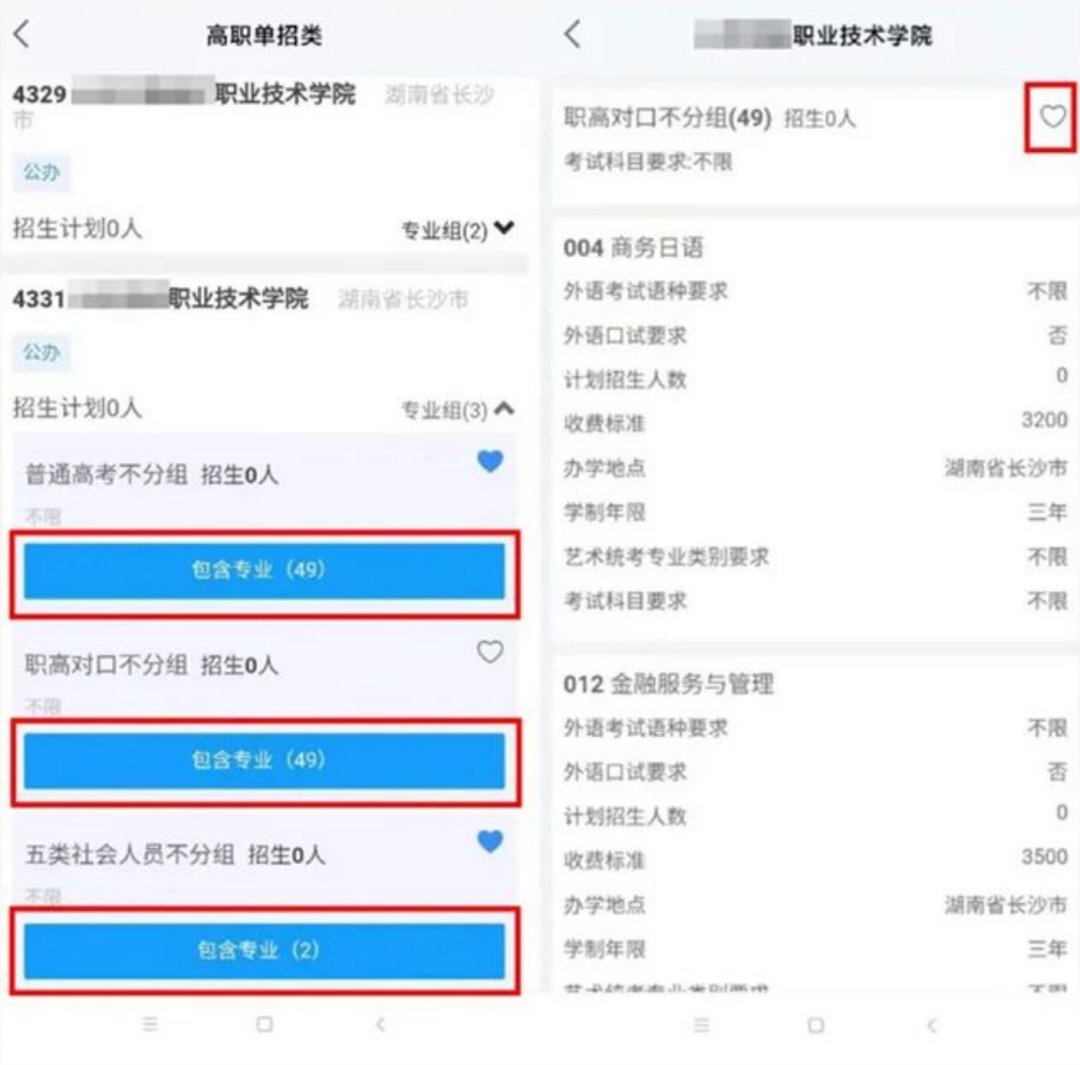 方法二:点击【包含专业】,进入专业详情页面,点击右侧“♡”,进行收藏