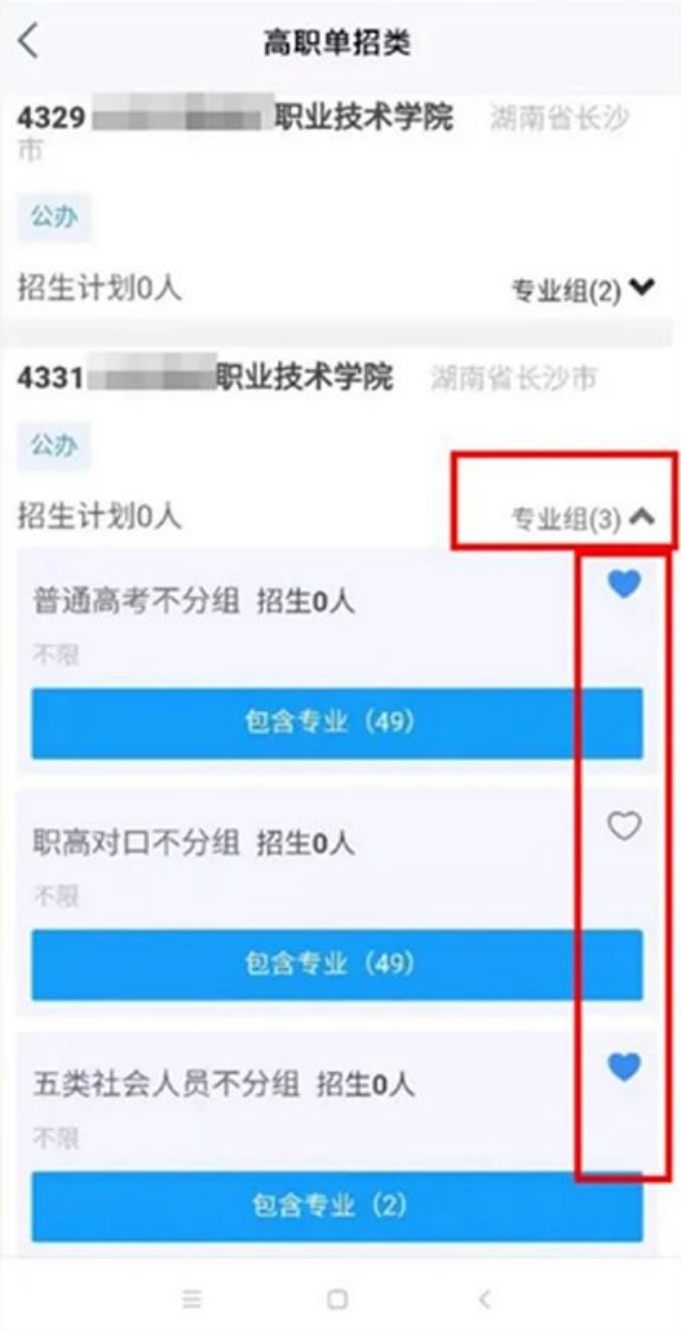 方法一:点击【专业组(n)】后,直接点击右侧“♡”,进行收藏。