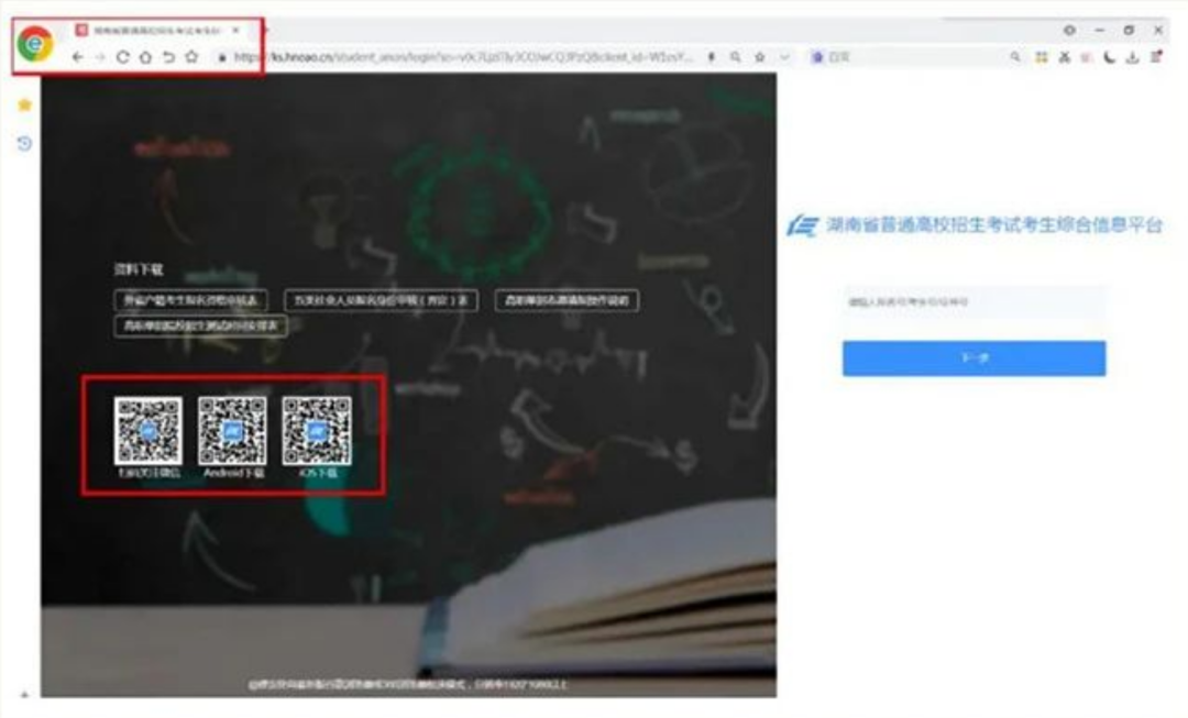 打开“湖南省普通高校招生考试考生综合信息平台”(网址:http://ks.hneao.cn)首页,使用手机扫码下载安装“潇湘高考”APP,也可通过苹果应用商店、腾讯应用宝、华为应用商店、小米应用商店下载安装。