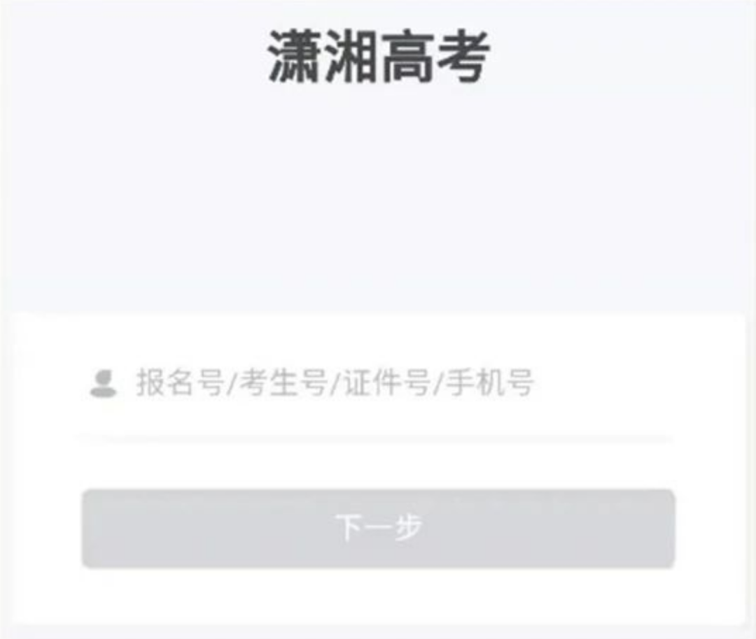 2.考生在手机上打开“潇湘高考”APP输入本人报名号或考生号或证件号或手机号,点击下一步。